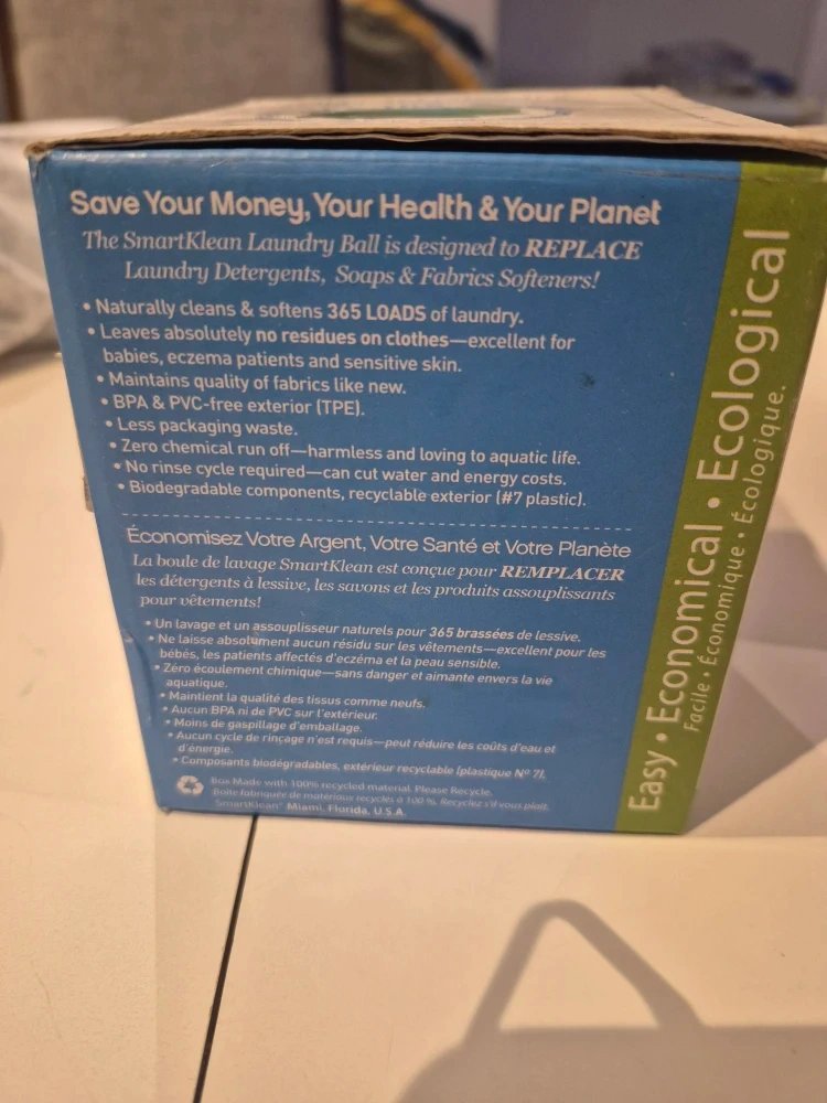 Looking to replace your laundry detergents, soaps and fabric softeners? This SmartKlean Laundry Ball is designed to naturally clean and soften 365 loads of laundry! It leaves no residues on clothes, making it excellent for those with sensitive skin. Plus, it's BPA & PVC-free and comes in recyclable packaging