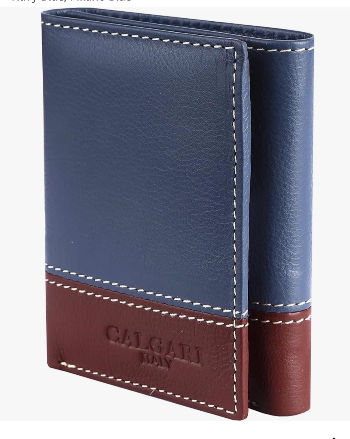 Calgari Italy Smart Trifold Wallet - Navy/Burgundy