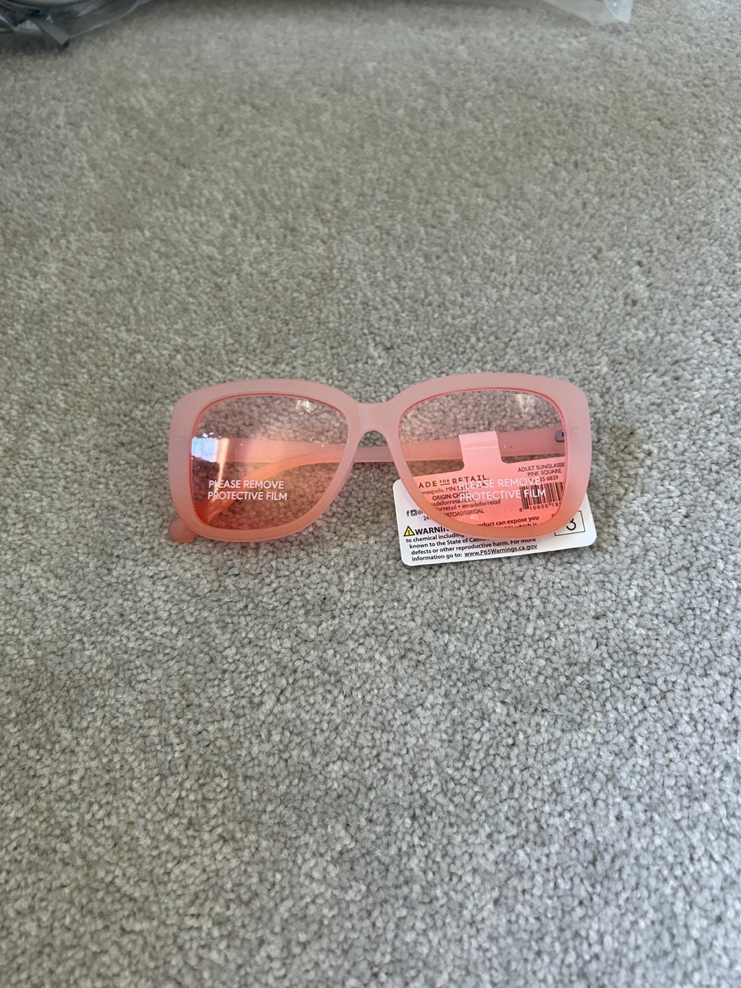 Brand new party favour sunglasses in various styles! There are heart-shaped sunglasses in red and white, striped sunglasses, and other fun colours. All have a protective film that needs to be removed. Perfect for adding a bit of fun to your summer look!