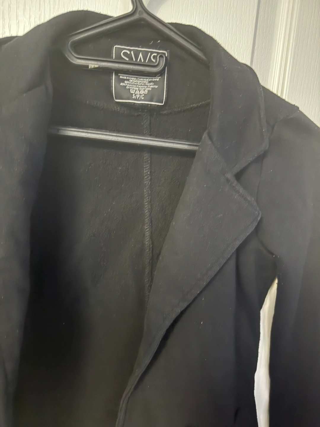 Selling a black blazer from SWAIS in size S/P. It's a stylish and versatile piece that can be dressed up or down. The blazer is in good condition and ready for a new wardrobe! I have many more clothes to give away for XS or small sizes - plz contact