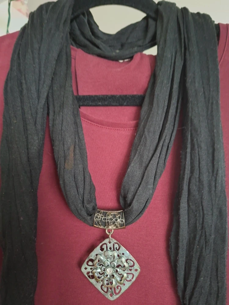 Black Scarf Necklace with Pendants