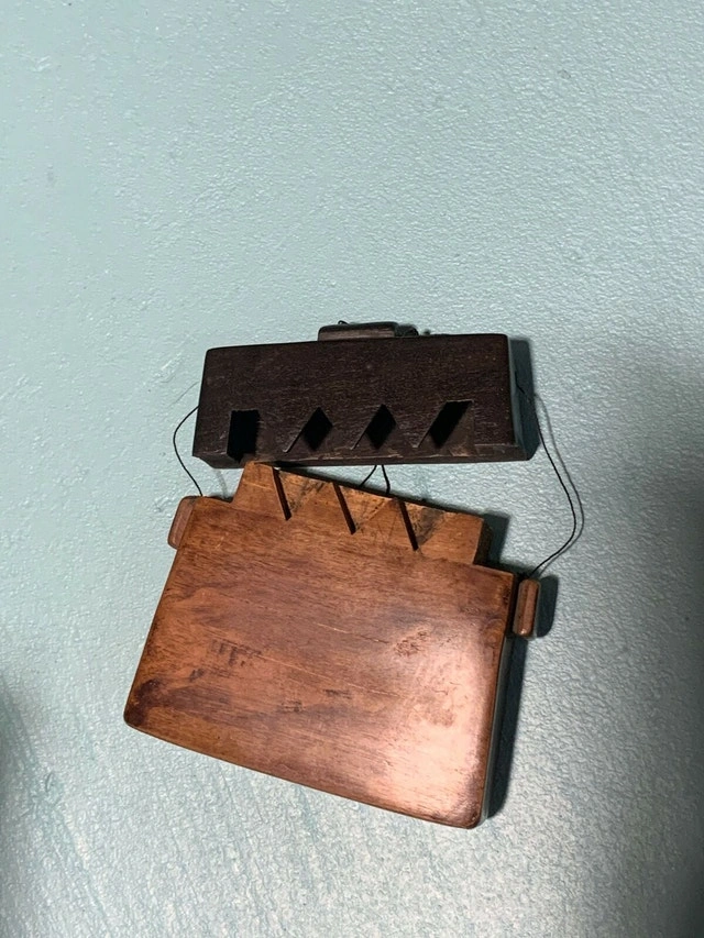 Vintage hand carved purse with perfect fit. Not sure how it’s carved but it is a piece of art. The string has been replaced at some point but is tied correctly to prevent things from falling out. Sometimes called a men’s dowry change purse. I saw one on a coffee table in the show Scandal.