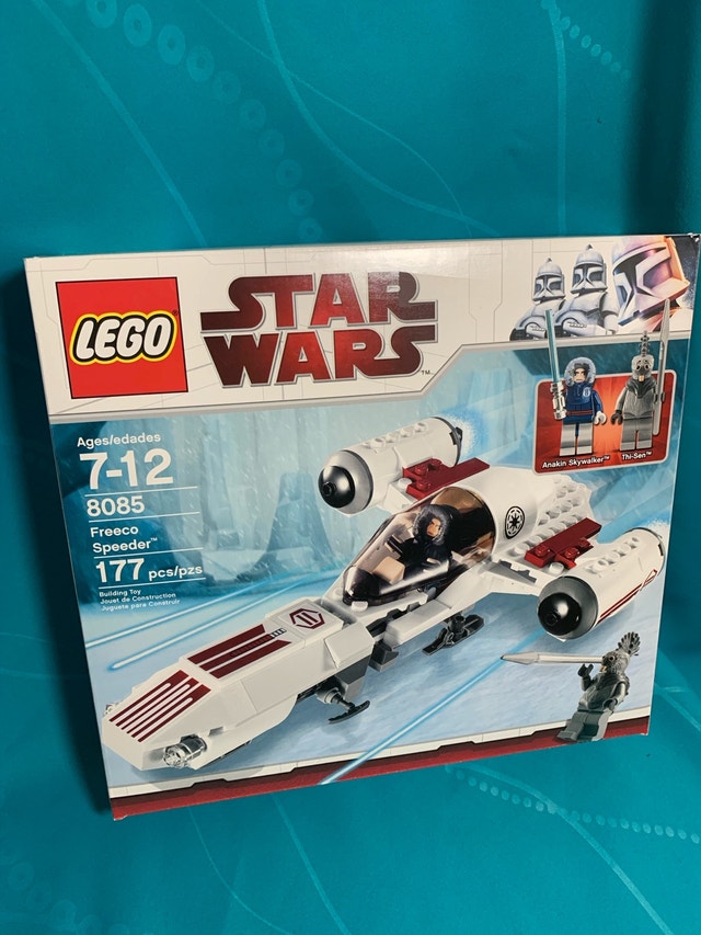 Relive the Clone Wars with the LEGO Star Wars Freeco Speeder set 8085! This complete, retired set features 177 pieces to build Ahsoka Tano's speeder from the icy world of Orto Plutonia. This set is in used condition but contains all the pieces to rebuild the set according to the instructions. Box and instructions included.