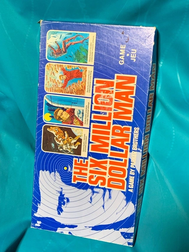 Relive the thrilling adventures of the Six Million Dollar Man with this vintage board game from Parker Brothers, a fantastic find for collectors and fans alike! This nostalgic game brings back the excitement of the classic TV show. This game is used, showing some wear on the box, missing one printed game piece but otherwise in good working order. Imagine strategizing your way through missions, just like Steve Austin himself! This is the more rare Canadian bilingual version. Based on the classic TV series. Perfect for collectors and fans. This game is a blast from the past, ready to bring some retro fun to your game nights.
