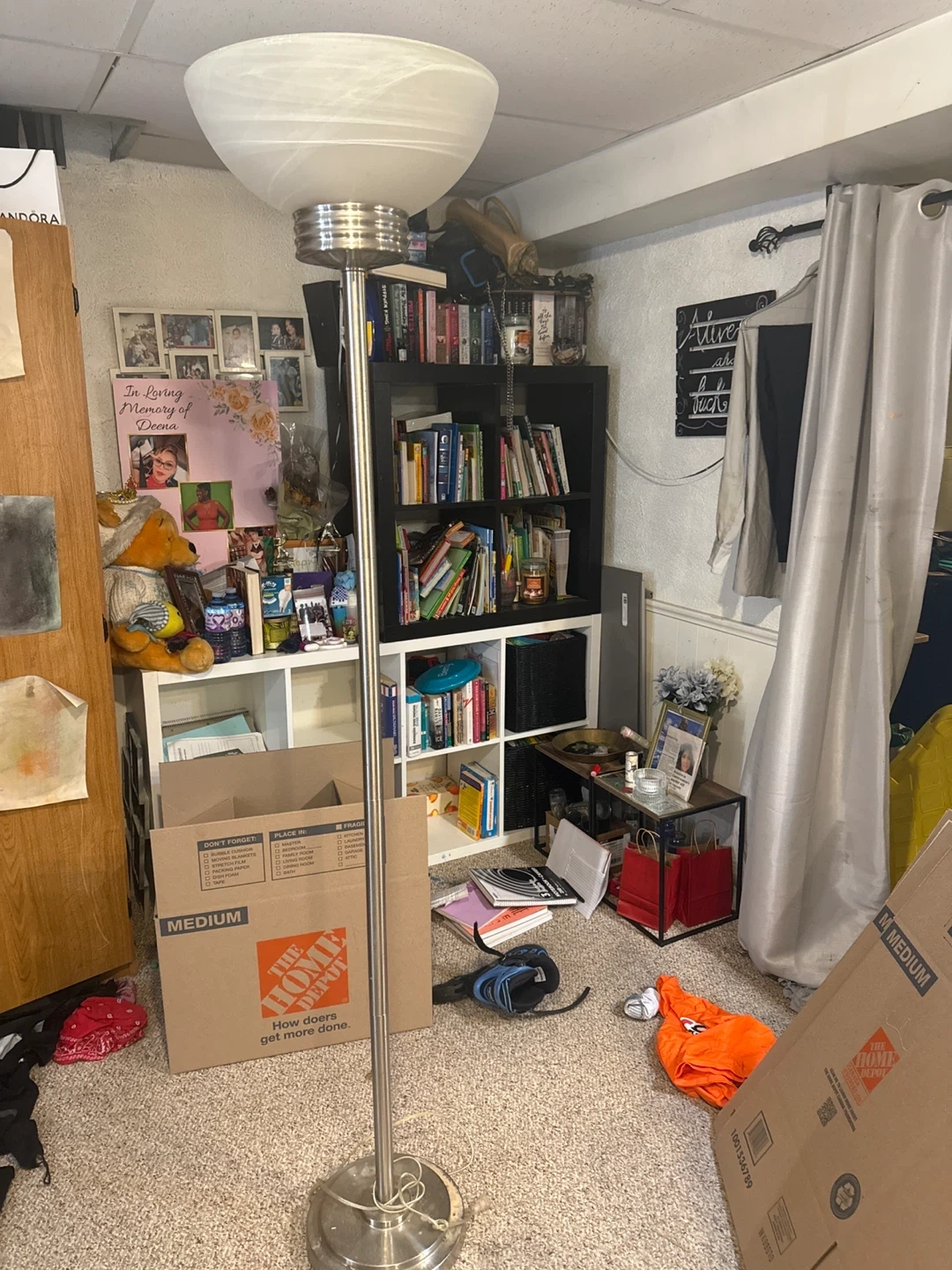 Selling a floor lamp with a marble-style shade. It's in good condition and would look great in any room. Perfect for adding a soft, ambient light to your living space!