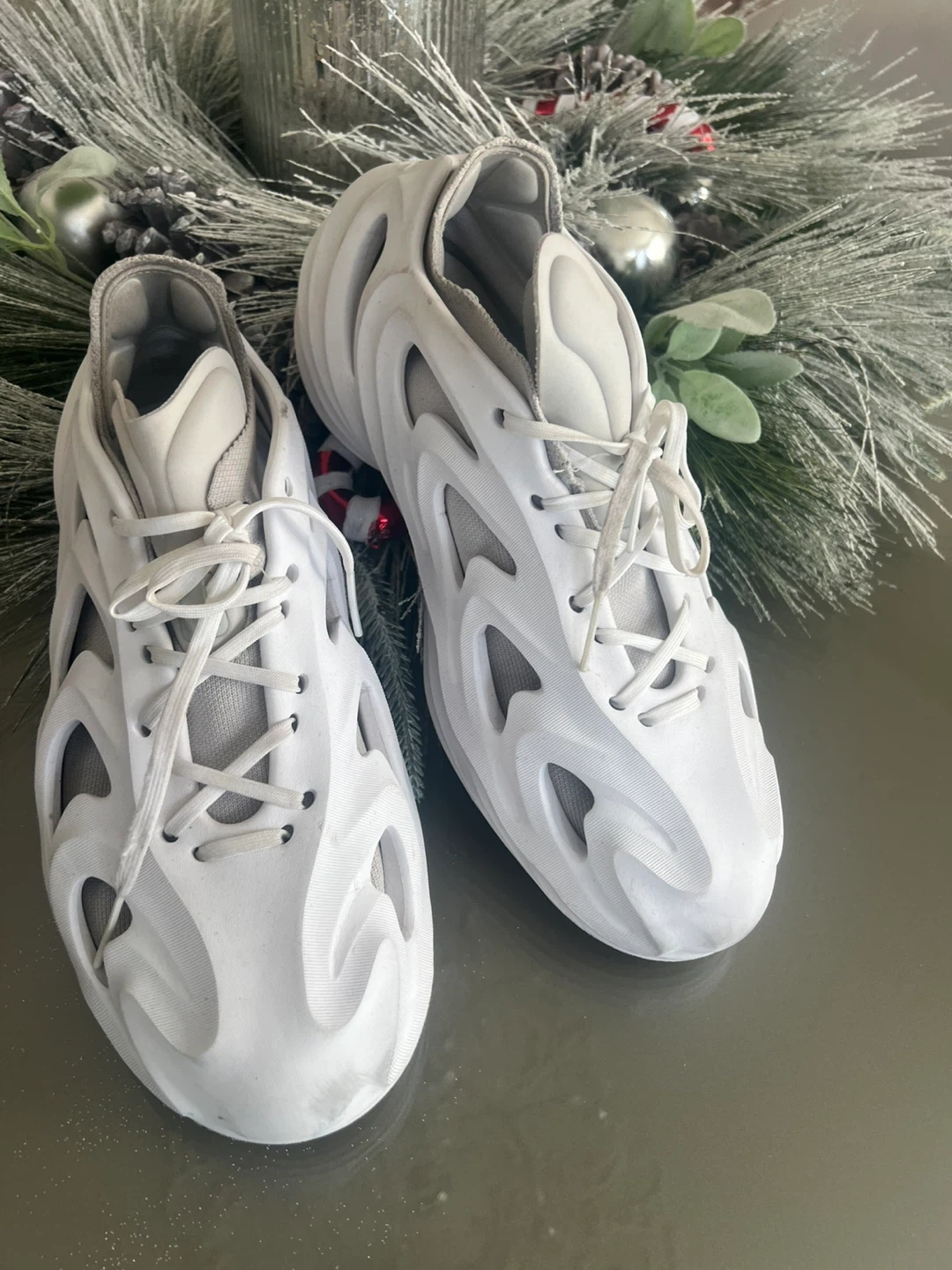 Selling a pair of Adidas AdiFOM Q shoes in white. These shoes offer effortless style and unrivaled comfort! They're in great condition and ready for their next adventure