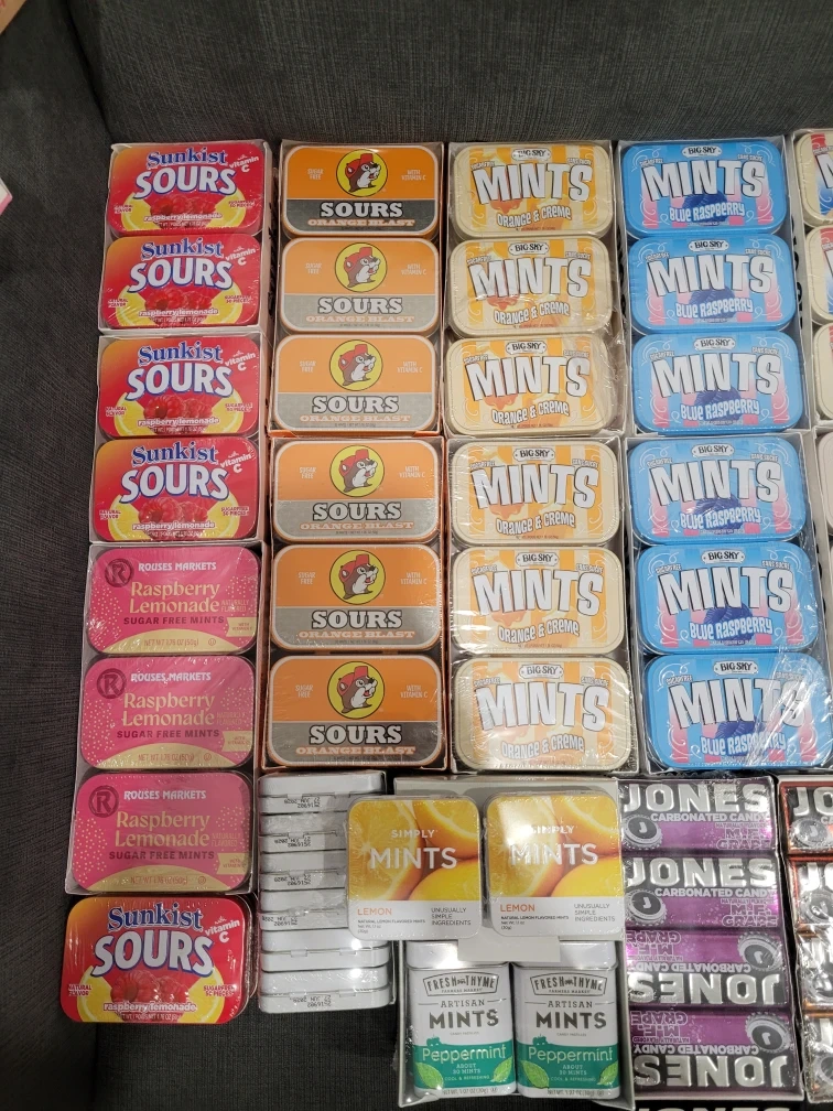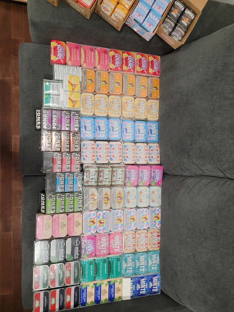 Smaller Tins: Citrus Delight, Simply Mints, Jones Carbonated Candy, etc