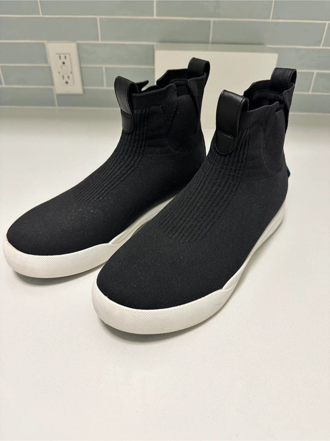 Selling a pair of Vessi boots in black! They're in basically brand new condition and super comfy. These are waterproof and perfect for keeping your feet dry and warm. Excellent for the rain and snowy weather. Stylish and practical!