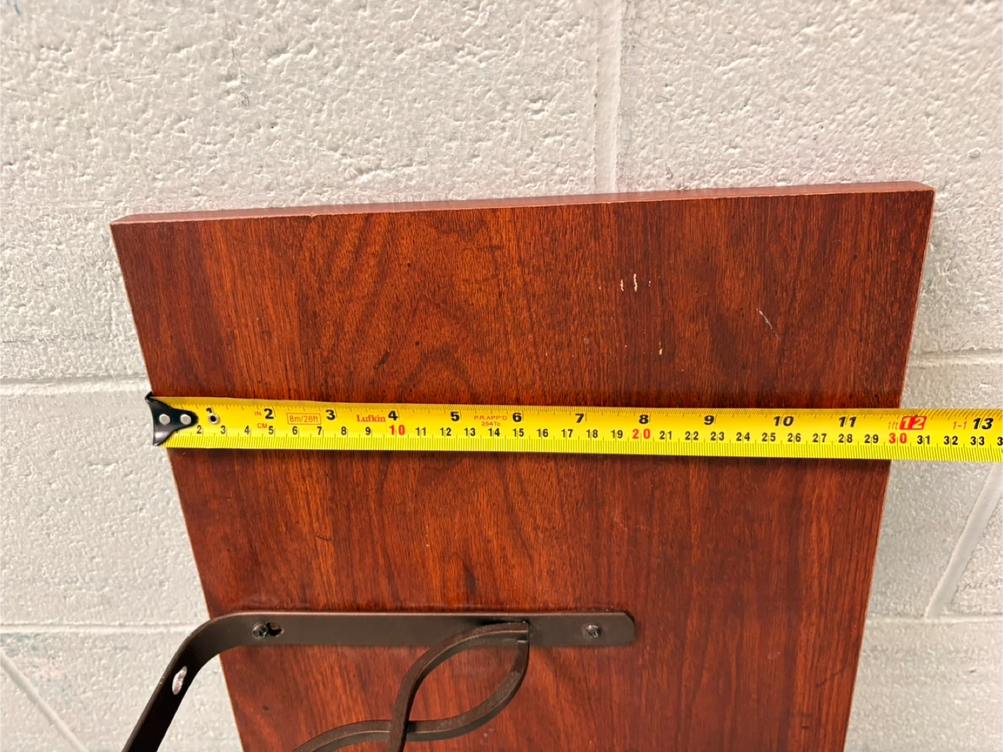 Here's a wooden wall shelf in a nice brown colour. It comes with the brackets needed to mount it on the wall. Perfect for adding a bit of storage or display space to any room!