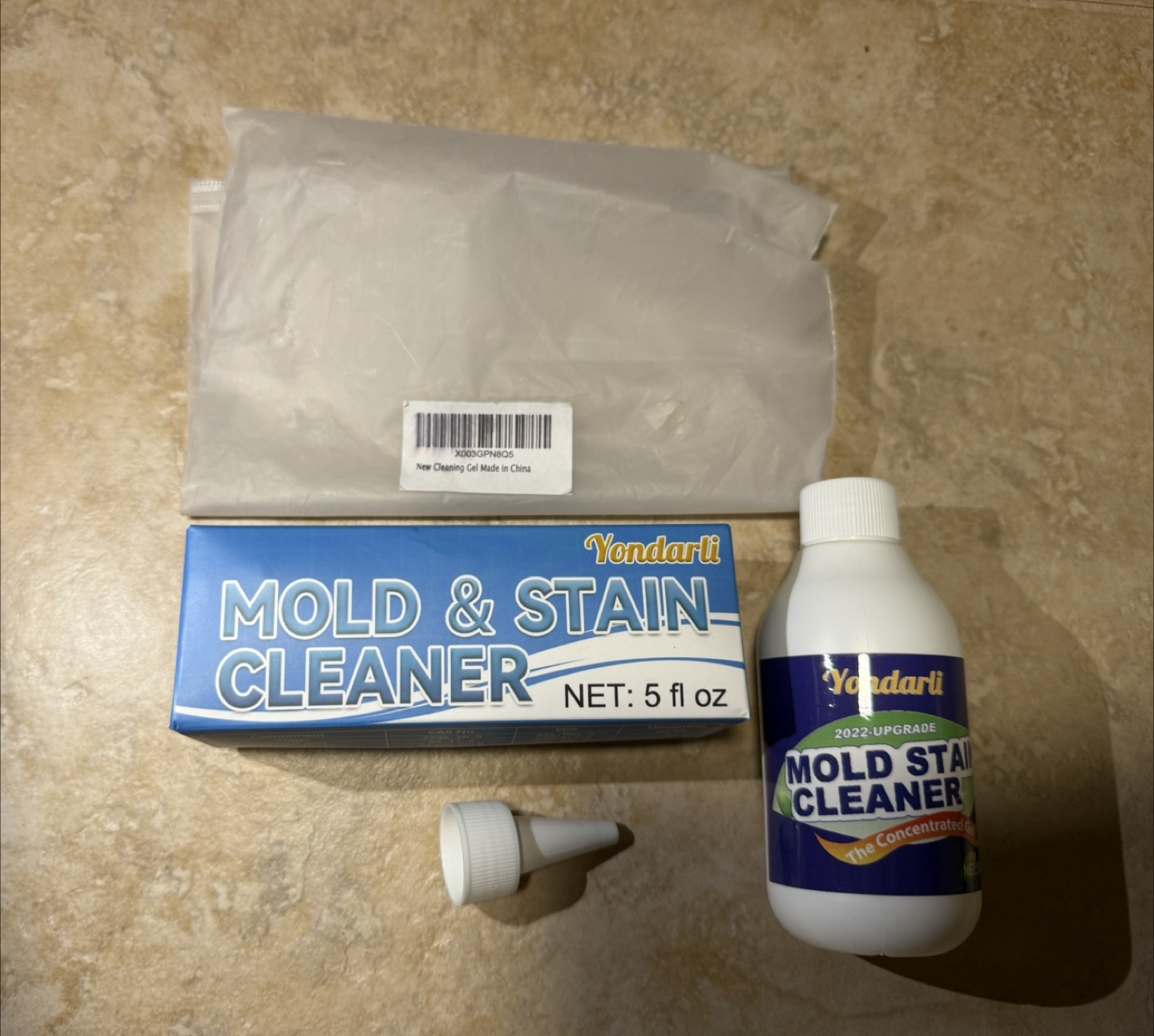 Yondarli Mold & Stain Cleaner set. I never got to open it because we moved.