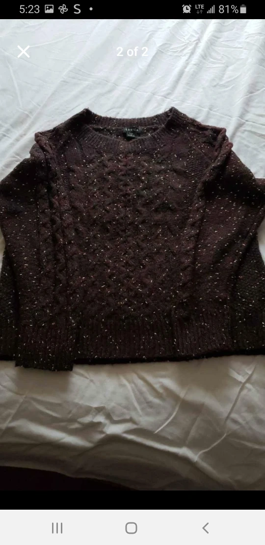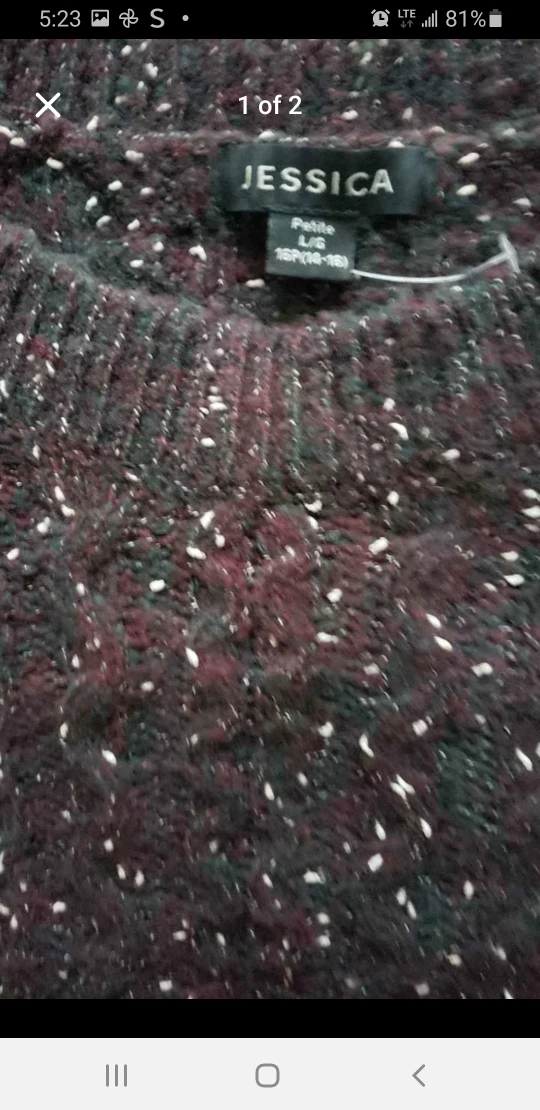 Selling a Jessica Petite sweater in size L/G. It’s a lovely burgundy colour with a speckled pattern throughout. Perfect for staying cozy!