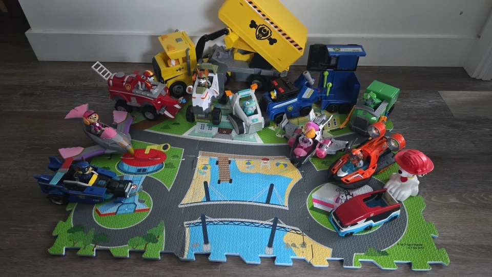 Selling a collection of Paw Patrol vehicles and a play mat! Includes various Paw Patrol characters and their vehicles. The play mat features a road and beach design. Great for any Paw Patrol fan!