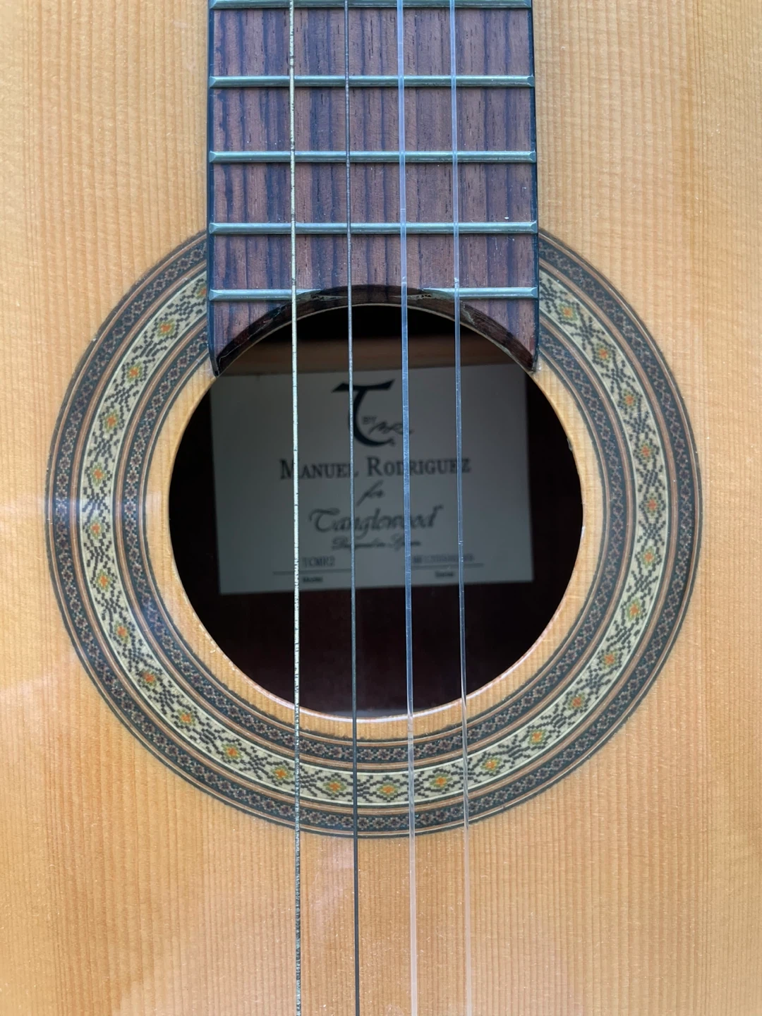 This is a well-built instrument, clearly marked on the internal label as "Manuel Rodriguez for Taylorwood." It has the rich, warm tone and easy playability you expect from the MR name. This is an ideal guitar for serious students, intermediate players, or anyone looking to upgrade their sound.