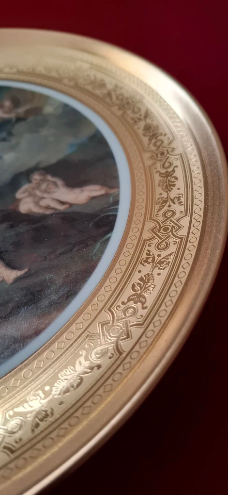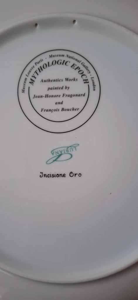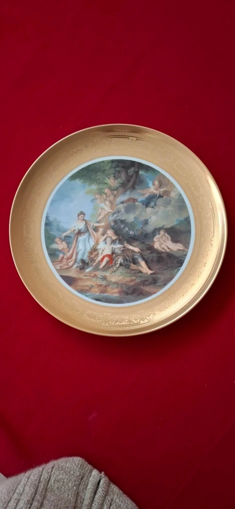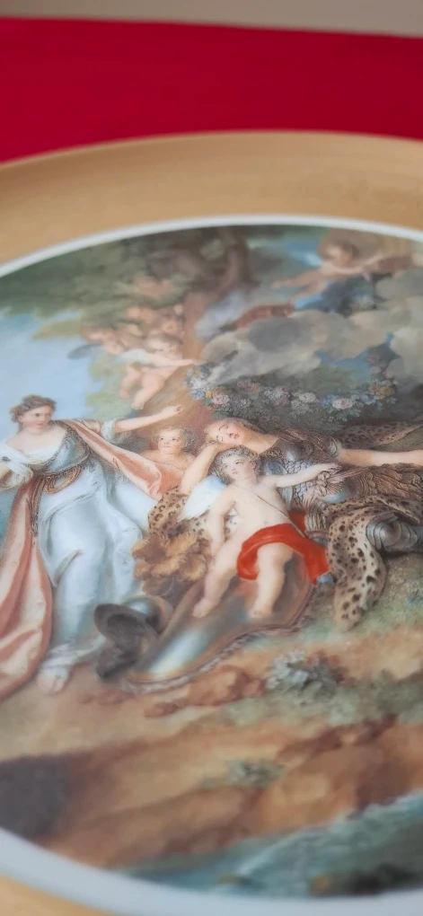 A decorative art plate. It's part of the Mythologic Epoch series, featuring authentic works painted by Jean-Honore Fragonard and Francois Boucher. It would look great on display!