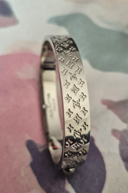 Selling a beautiful Louis Vuitton bangle bracelet! It features the iconic LV monogram pattern. It's in great condition and ready to wear