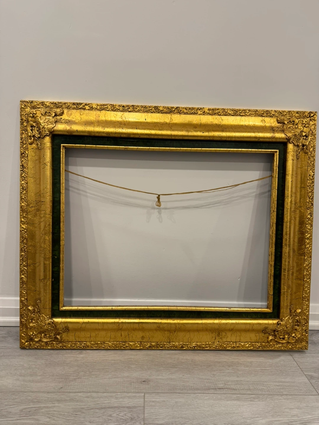 Selling a beautiful ornate gold picture frame! It's in good condition and ready to display your favourite artwork or photos. The frame has a lovely vintage look and would add a touch of elegance to any room Good for a Picture or painting of 20inches by 26inches. The frame size is 37 inches by 32 inches.