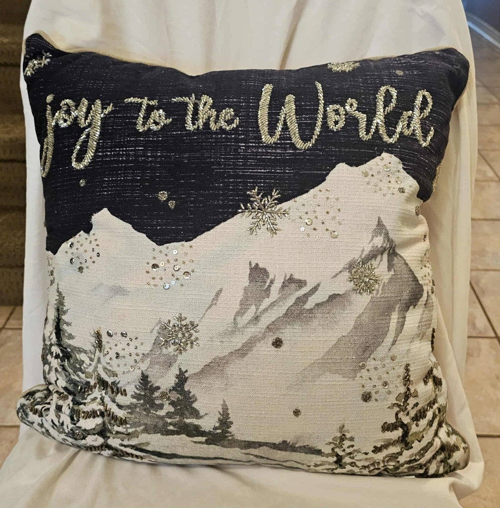 This Multi-Coloured "Joy to the World" Christmas Decorative Pillow is Brand New and never used. No tags attached.