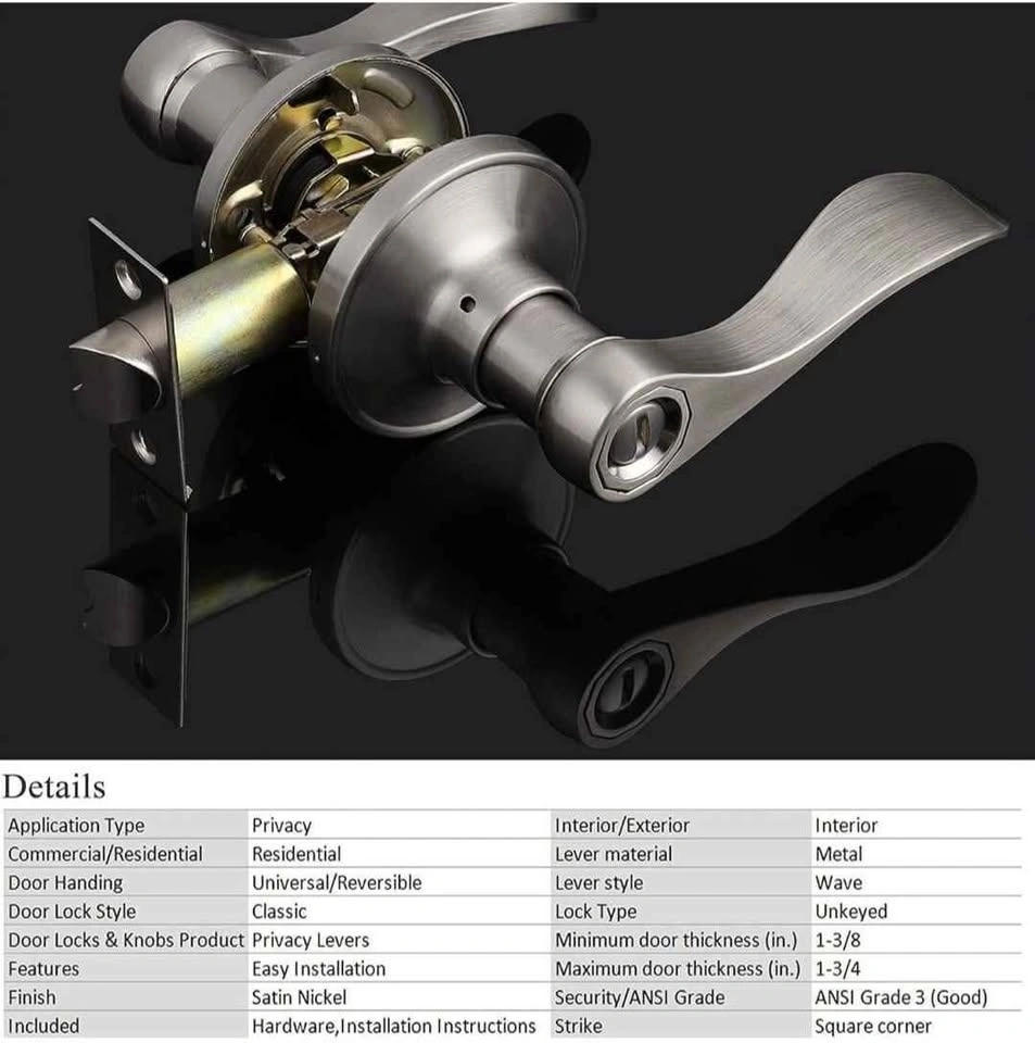 6 Pack Probrico Satin Nickel Door Handles with Lock