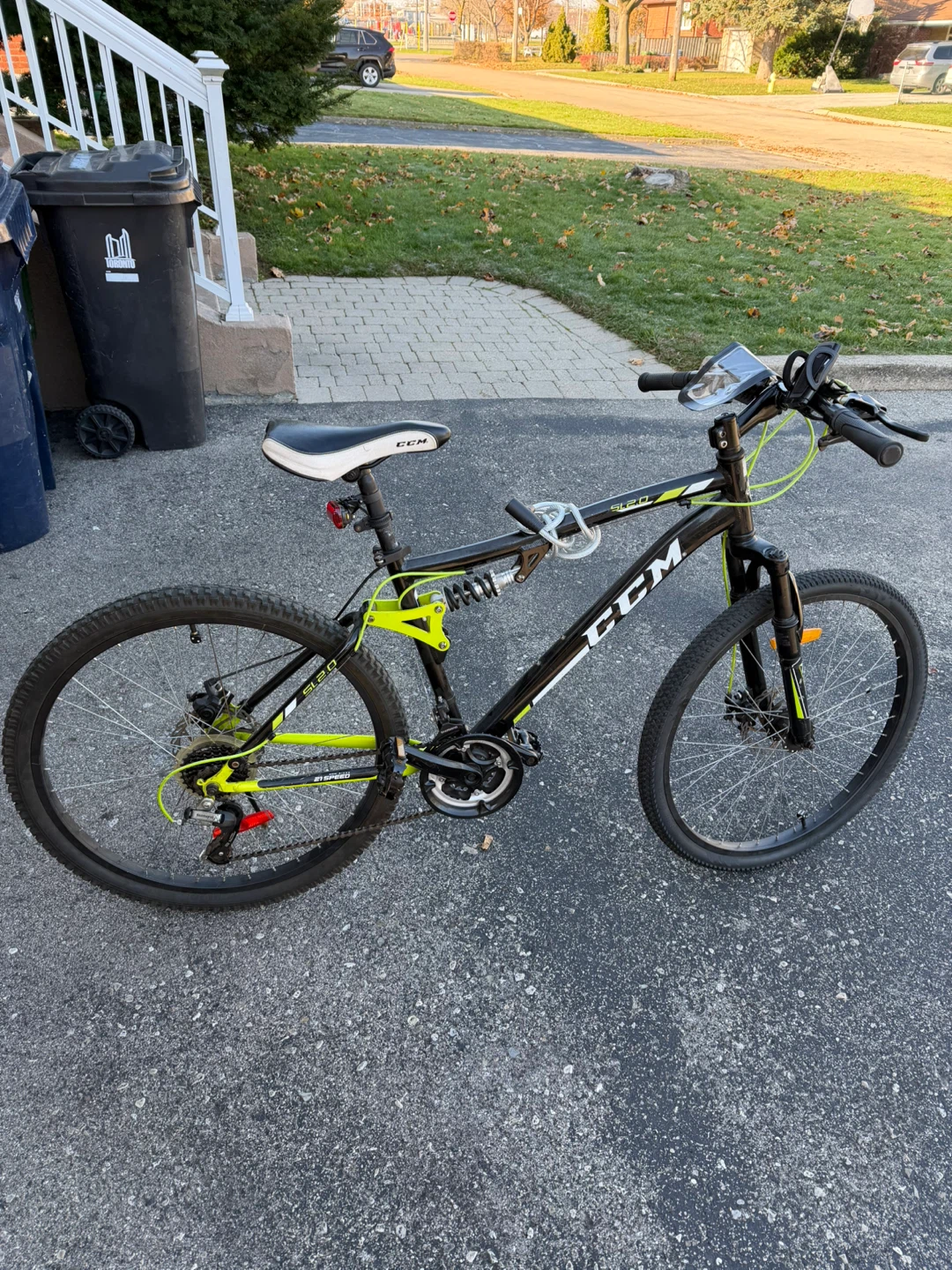 1 / 71 / 7Buy & SellCCM Full Suspension Mountain BikeCCM Full Suspension Mountain Bike$81Selling a CCM full suspension mountain bike. It's black and green, and ready for some off-road adventures! Works all good everythingConditionLike newWHERE TO MEETCheck LocationView MapSELLERverifiedBrianBathurst Manor1398 reviews3 chats·1 favorites·48 viewsSEND CHAT TO SELLERHi Brian! I’m interested in your listing.Hi Brian! I’m interested in your listing.Get the Karrot app to chatSign In to chat