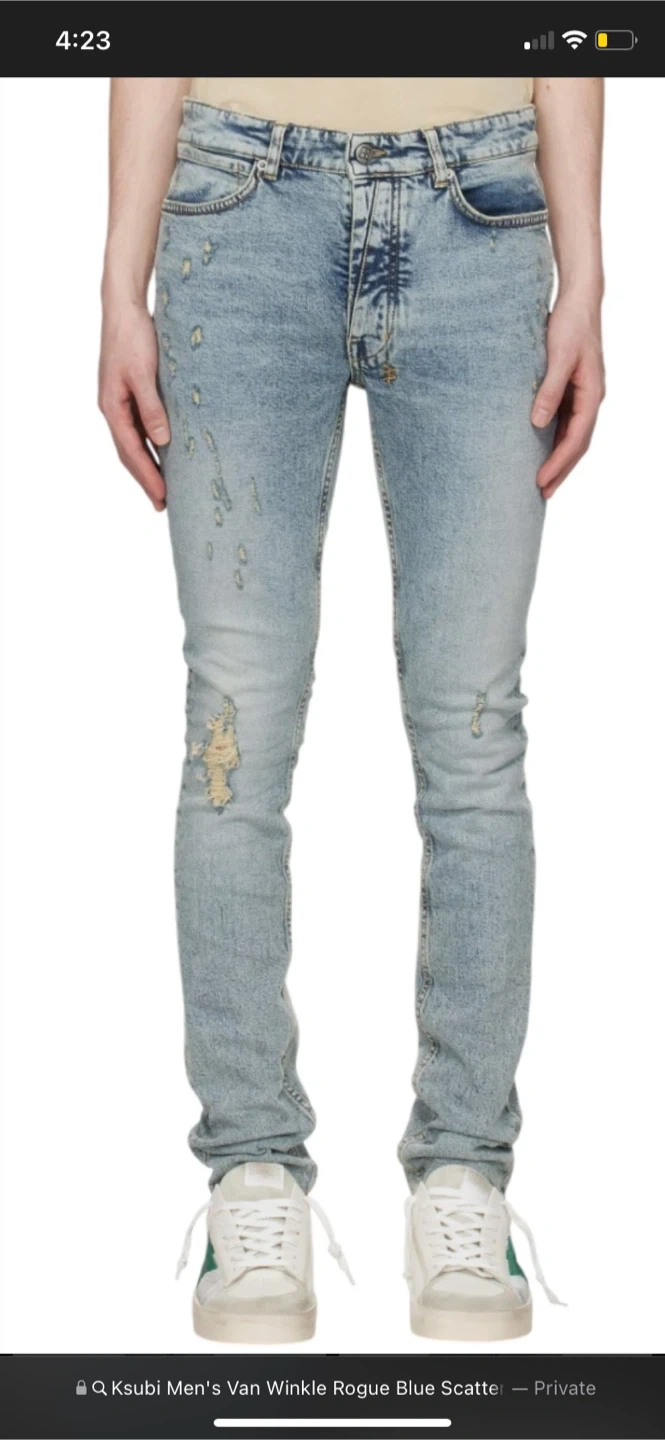 Selling a pair of ksubi jeans. They have a light wash and some distressed detailing. These are great for a casual look! original price $310
