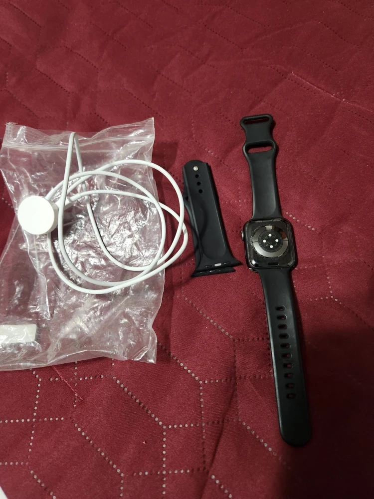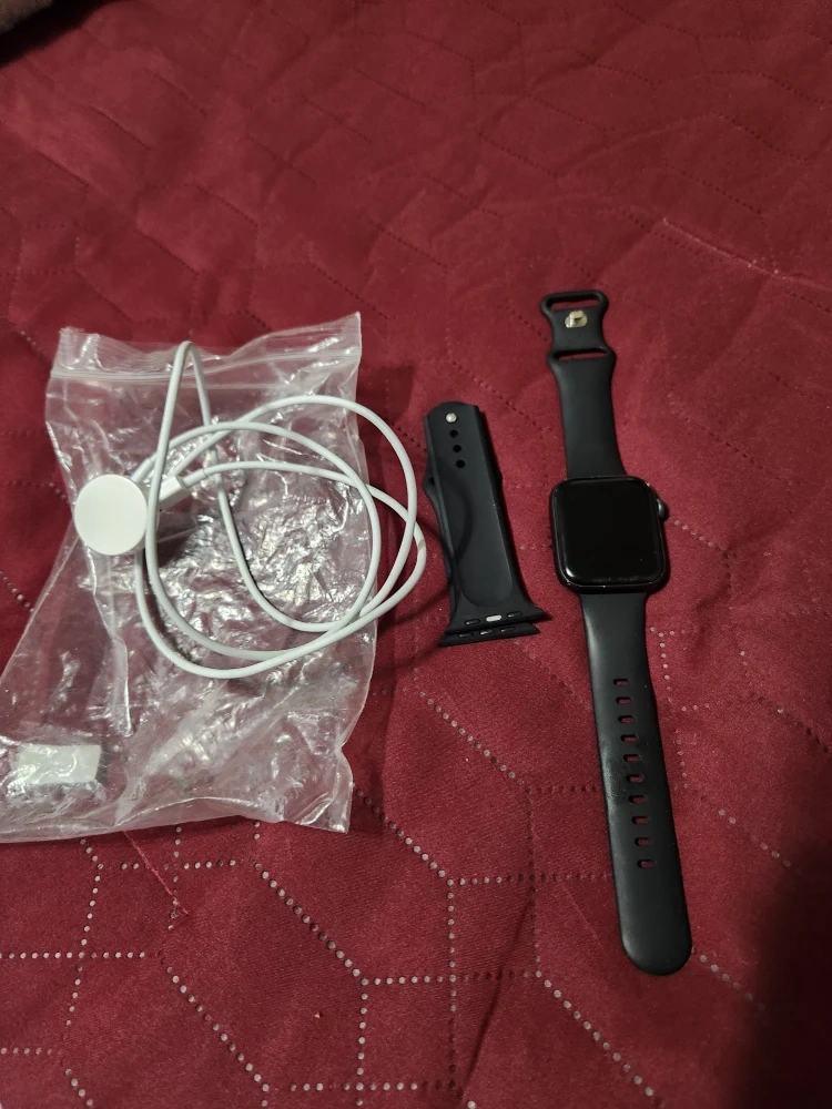 Selling an Apple Watch in black! It comes with the charger and an extra band piece. Great for tracking fitness or just staying connected on the go