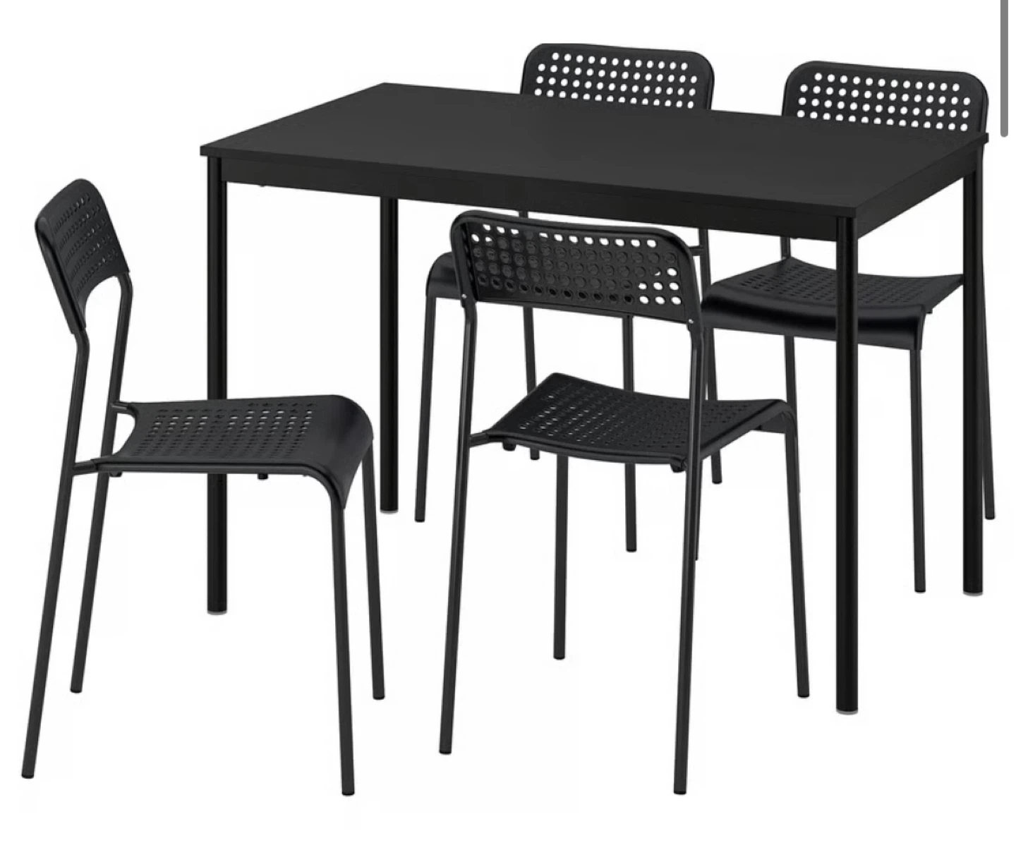 Selling an IKEA Lisabo dining table with four Adde chairs. This set is perfect for a small dining area or kitchen. The table has a clean, simple design and the chairs are lightweight and easy to move around. It's in great condition and ready for a new home!