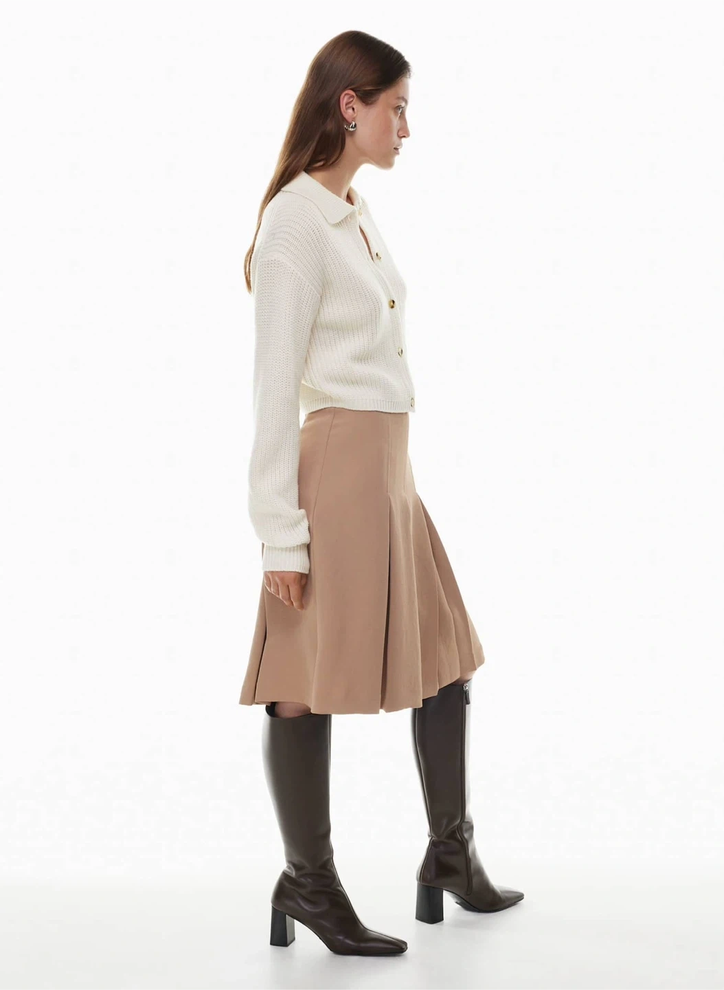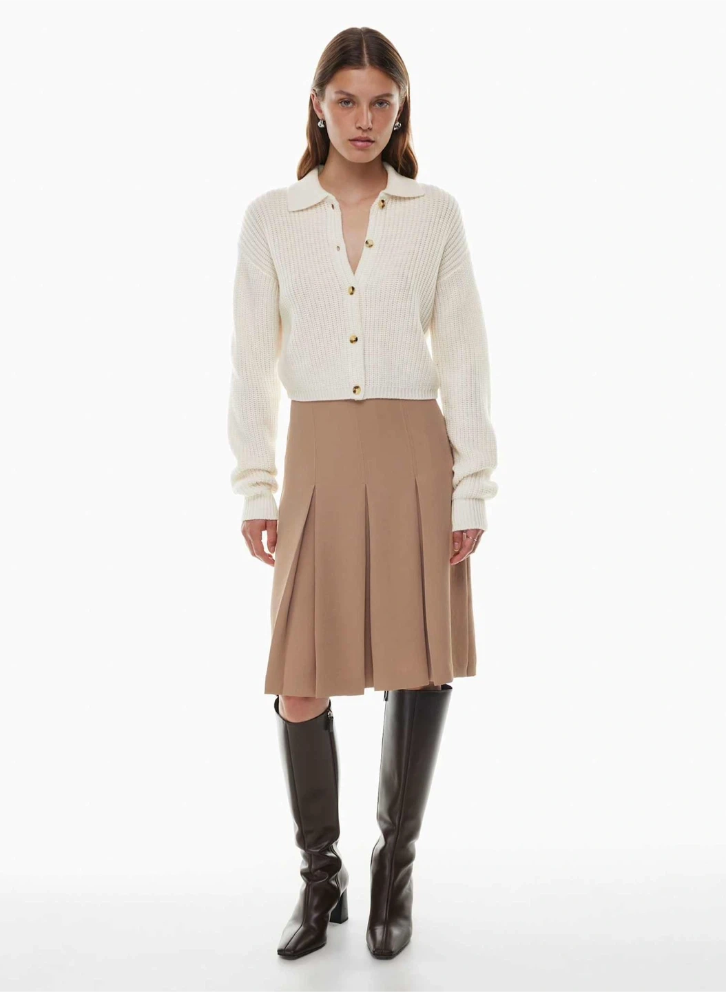 A plunge that always works out. This is a fully fashioned cardigan with a plunging V neckline. It's knit with Breeze Merino — extra-fine merino wool and cotton yarn with lightweight, all-season warmth and a soft feel. It's constructed using a Double Knit stitch for structure and a flat, dense feel.