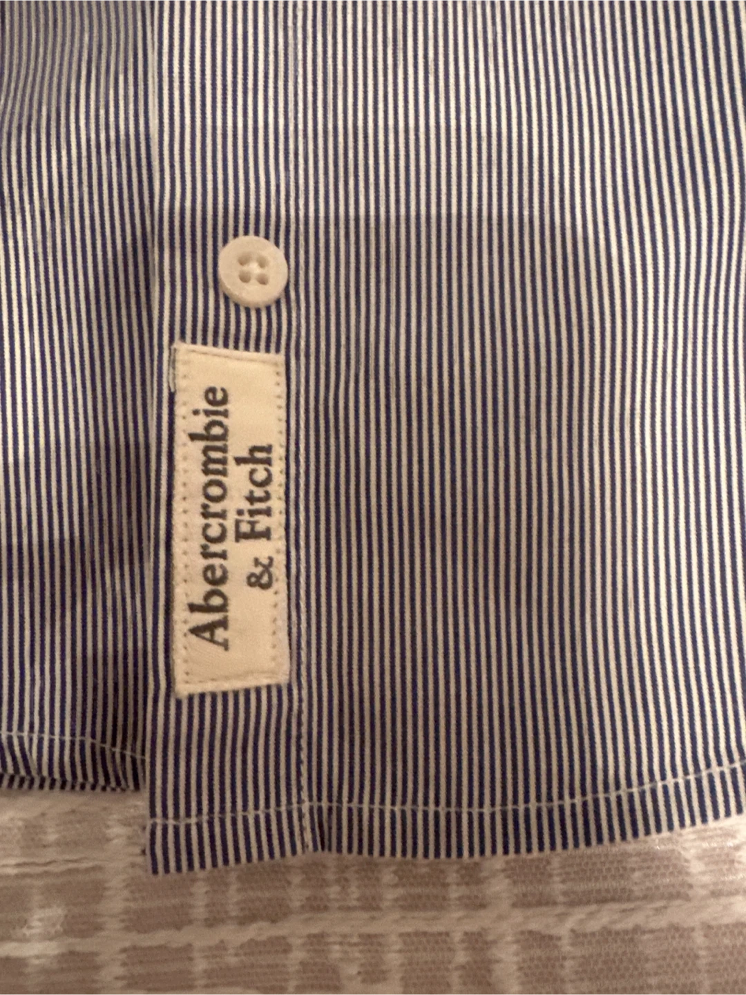 Here's a classic striped button-down shirt from Abercrombie & Fitch. It features a subtle A&F logo on the chest pocket.