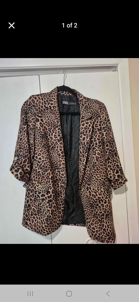Selling a Zara blazer with a fun leopard print! It's a size small and in great condition. Perfect for adding a bit of flair to any outfit