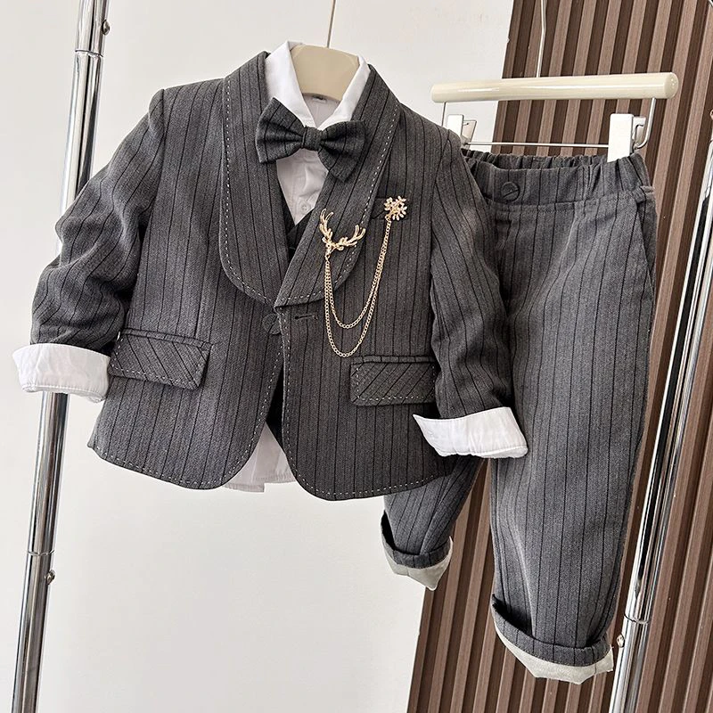 Boys' Grey Striped Suit Set