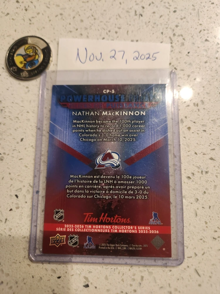 Buy & SellNathan MacKinnon Tim Hortons Hockey CardNathan MacKinnon Tim Hortons Hockey CardTrade🔎 In Search Of (ISO):CP-1 McDavid, CP- 3 Matthew's, or CP-6 BedardLearn about tradesLooking to trade Nathan Mackinnon Powerhouse Pillars for CP-1 McDavid, CP- 3 Matthew's, or CP-6 Bedard WHERE TO MEETCheck LocationView MapSELLERverifiedJasonErin Ridge N600 reviews0 chats·0 favorites·10 viewsSEND CHAT TO SELLERHi Jason! I’m interested in your listing.Hi Jason! I’m interested in your listing.Get the Karrot app to chatSign In to chat