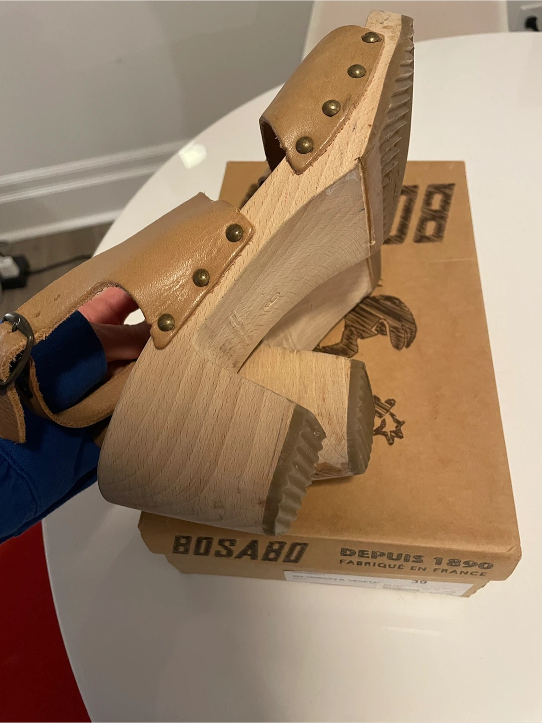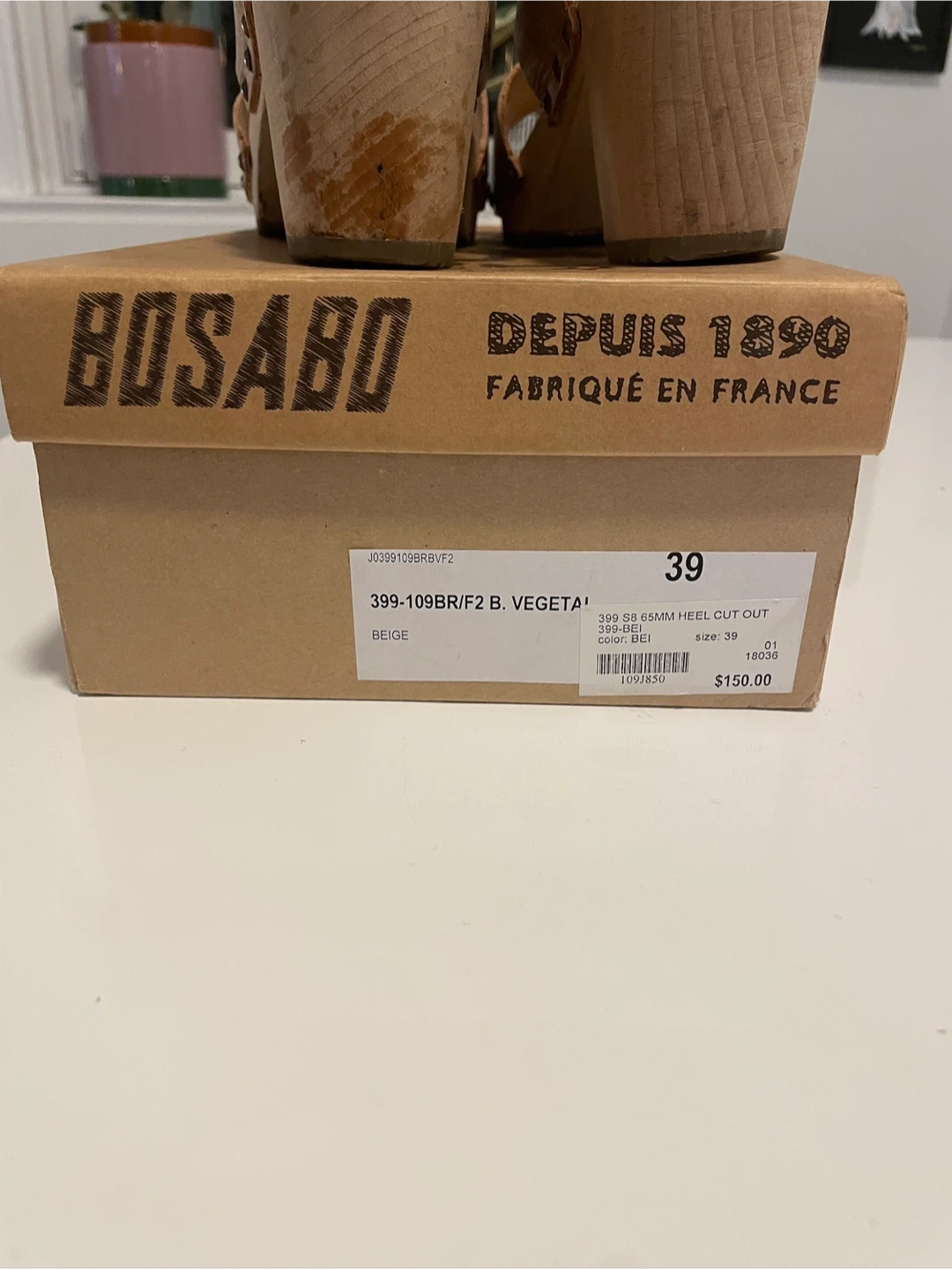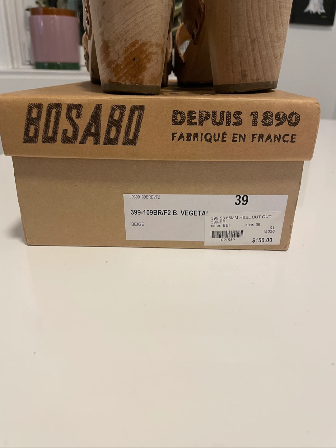 Bosabo Beige Leather Heel Cut Out Clogs - Size 9/39