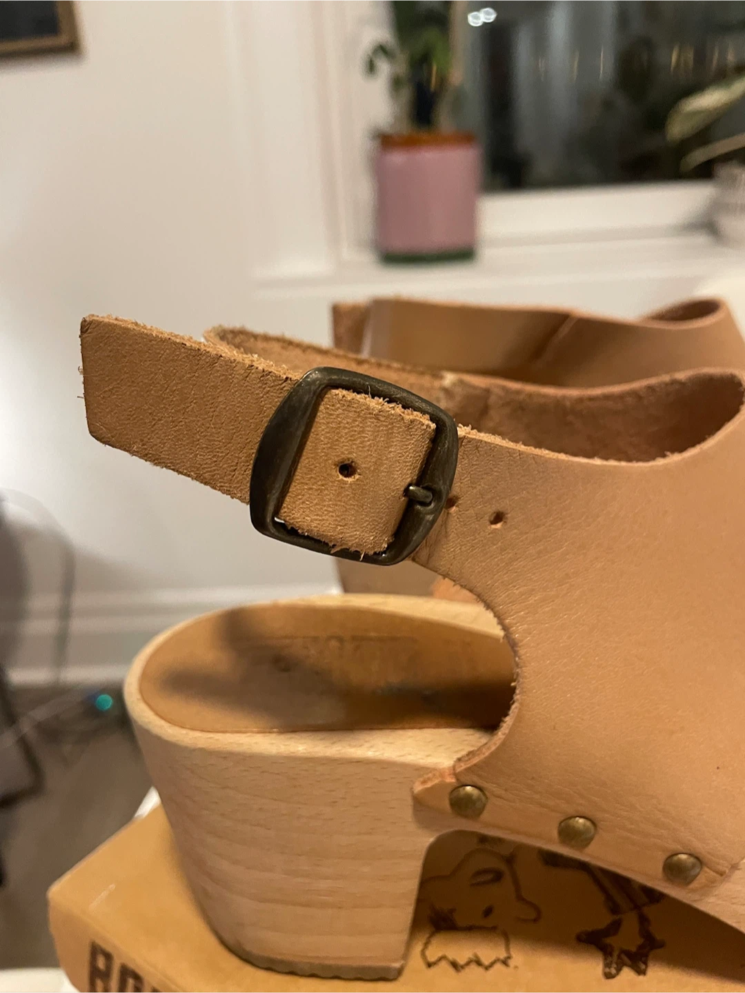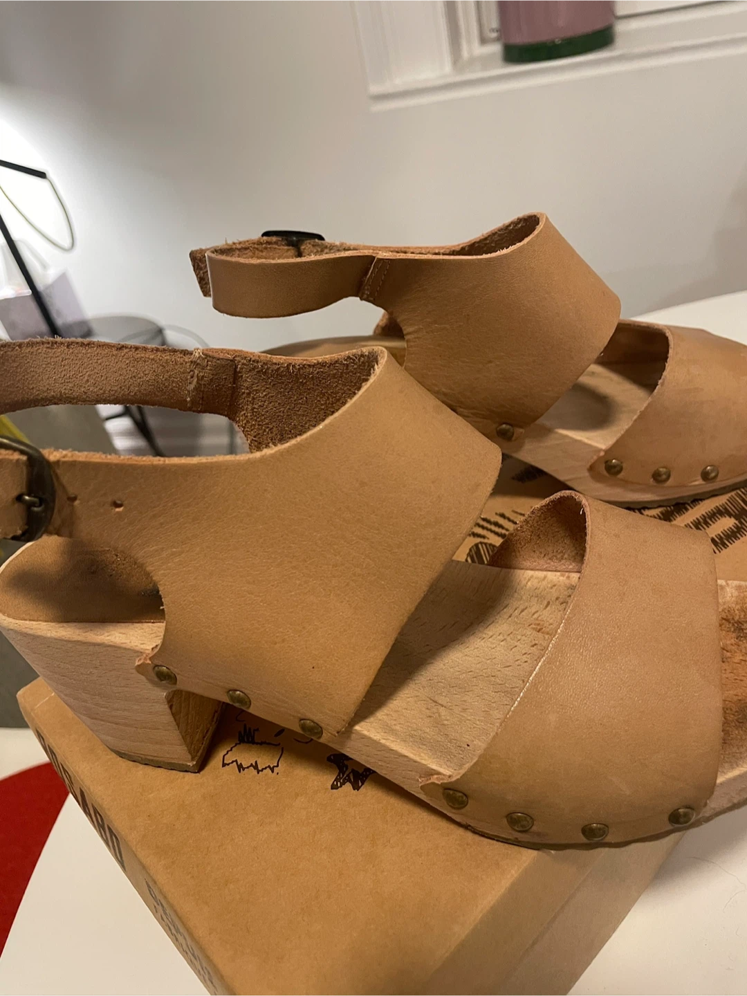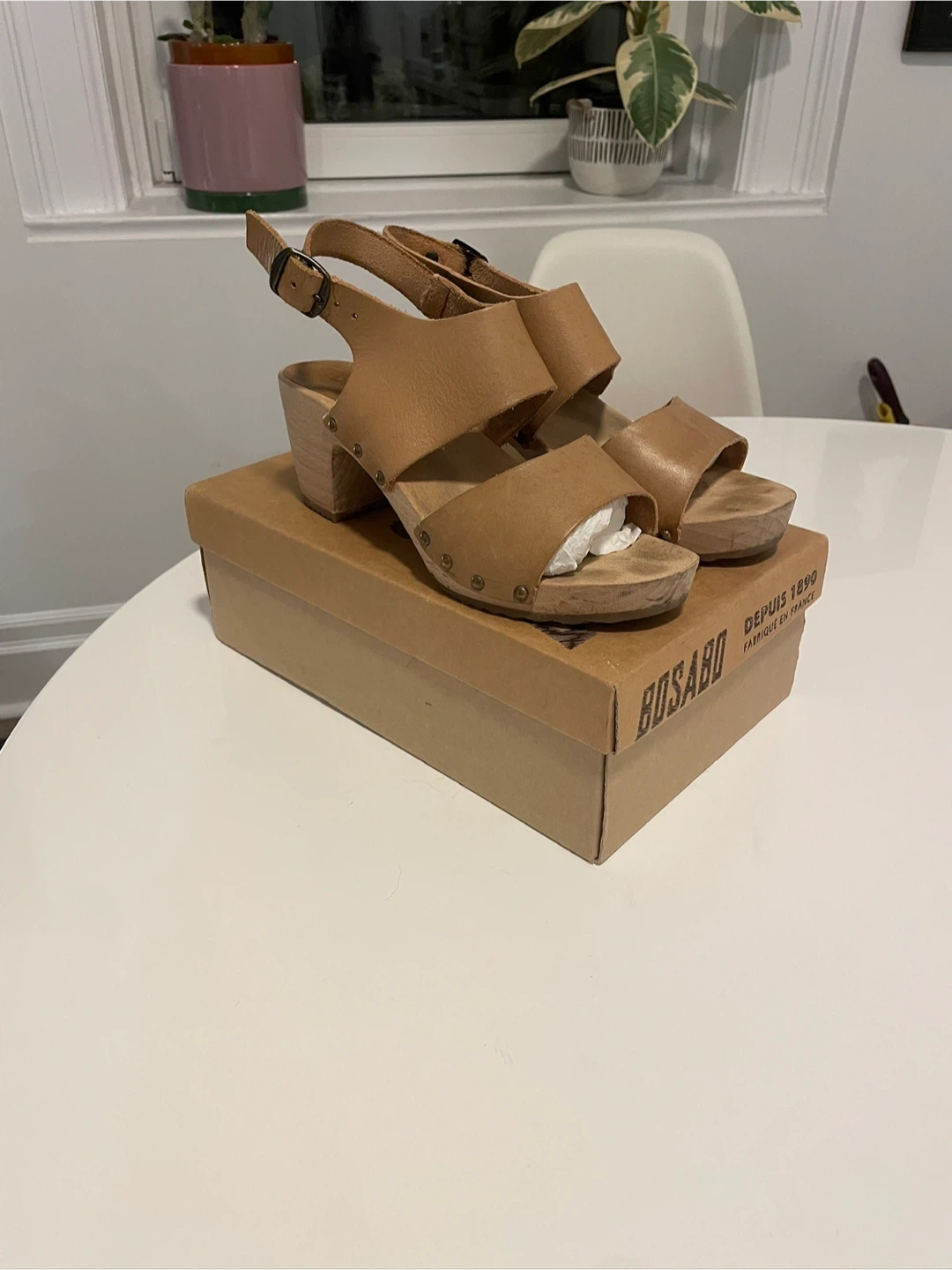 Bosabo Beige Leather Heel Cut Out Clogs - Size 9/39