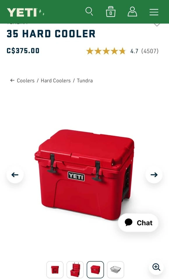 Red YETI 35 HARD COOLER. Brand new, never used. Has a latch closure and a drain on the back. Comes with dividers inside. Durable and great for outdoor activities.