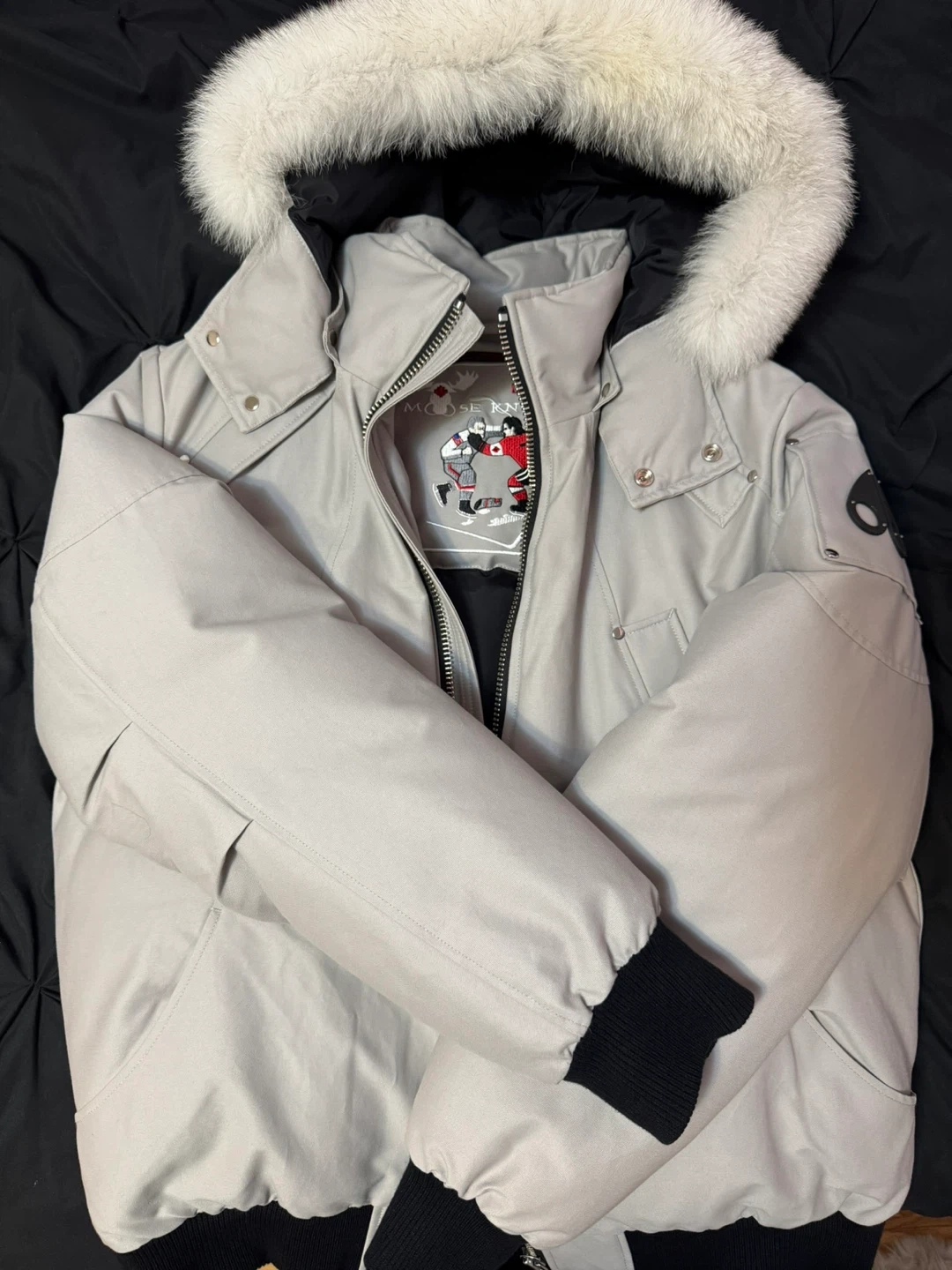 Authentic Moose Knuckles Ballistic Bomber, size XL, in excellent condition. Warm, durable, and designed with high-quality down insulation and a fox-fur trimmed hood. No rips, tears, or functional issues. Clean, well-kept, and ready for winter.