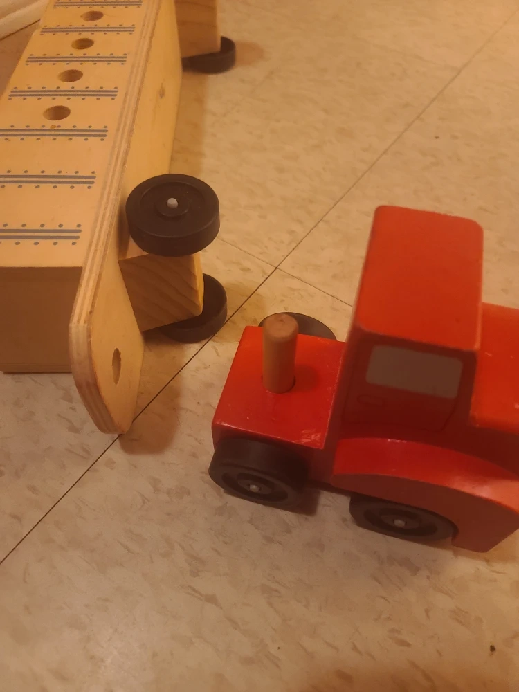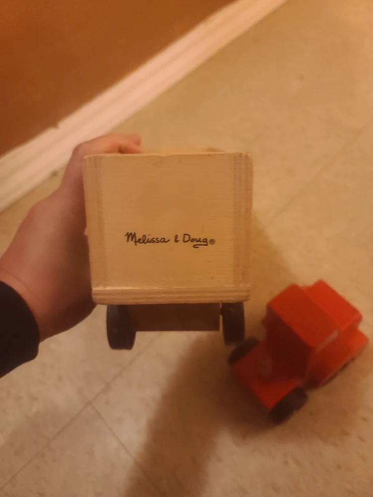 Here's a Melissa & Doug wooden truck! It's in good condition and ready for a new adventure. No small parts, perfect for younger tots. Great for kids who love trucks and construction toys