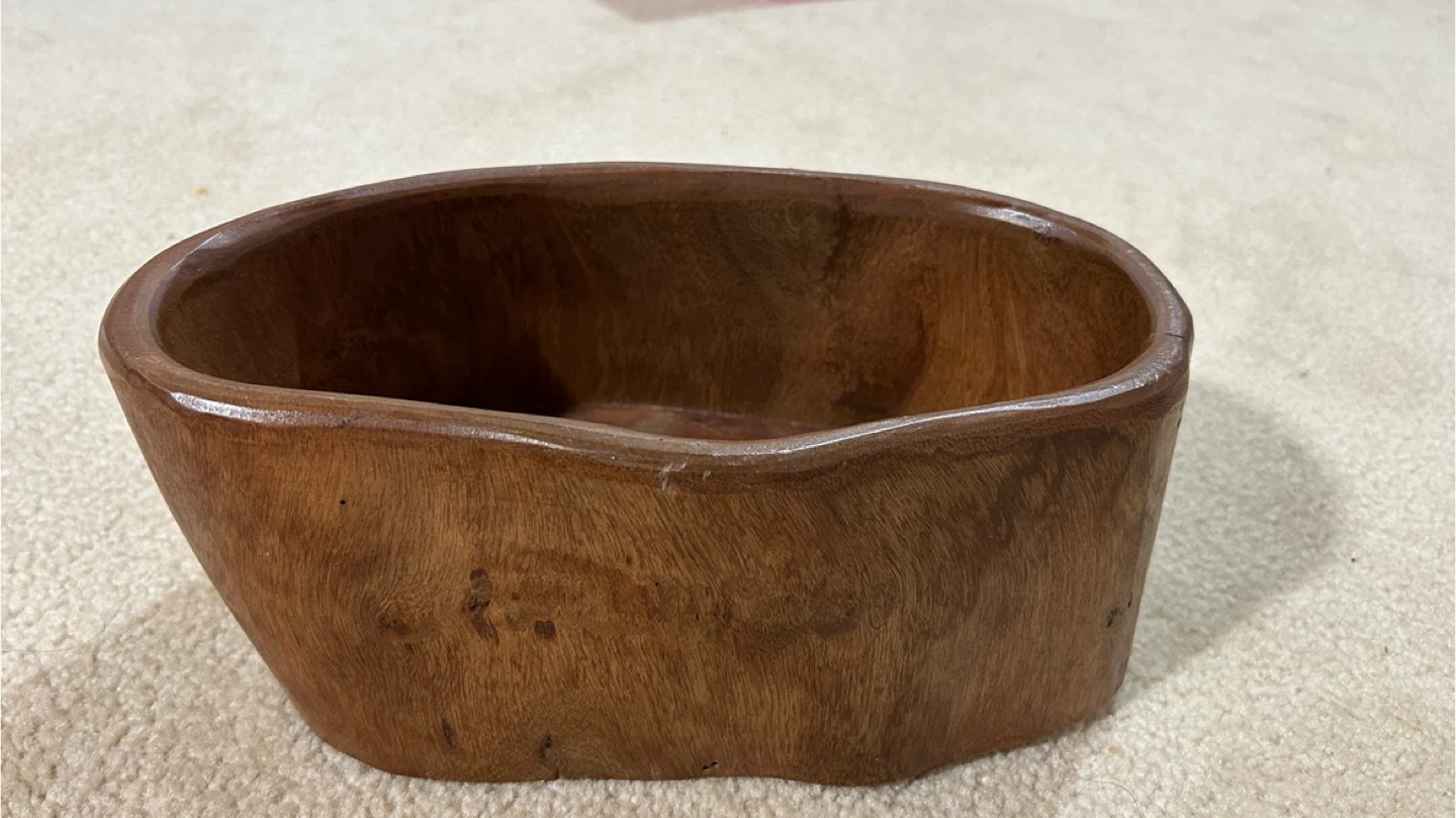 Brand new wooden bowls! Each 15.00. Only three available. They have a beautiful, rustic look. The largest bowl measures approximately 11 inches in length. Perfect for adding a touch of natural charm to your home decor