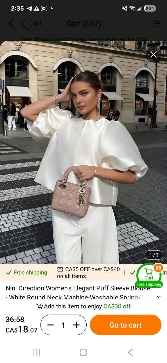 Selling a Nini Direction women's elegant puff sleeve blouse in white. It features a round neck and is machine washable. A great addition to your spring wardrobe!