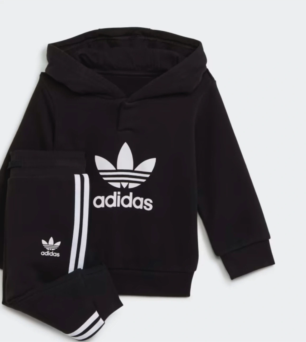 Selling a cute Adidas Adicolor hoodie set in black! It includes a hoodie and matching pants, both featuring the classic Adidas three-stripe design. Perfect for keeping your little one stylish and comfy.