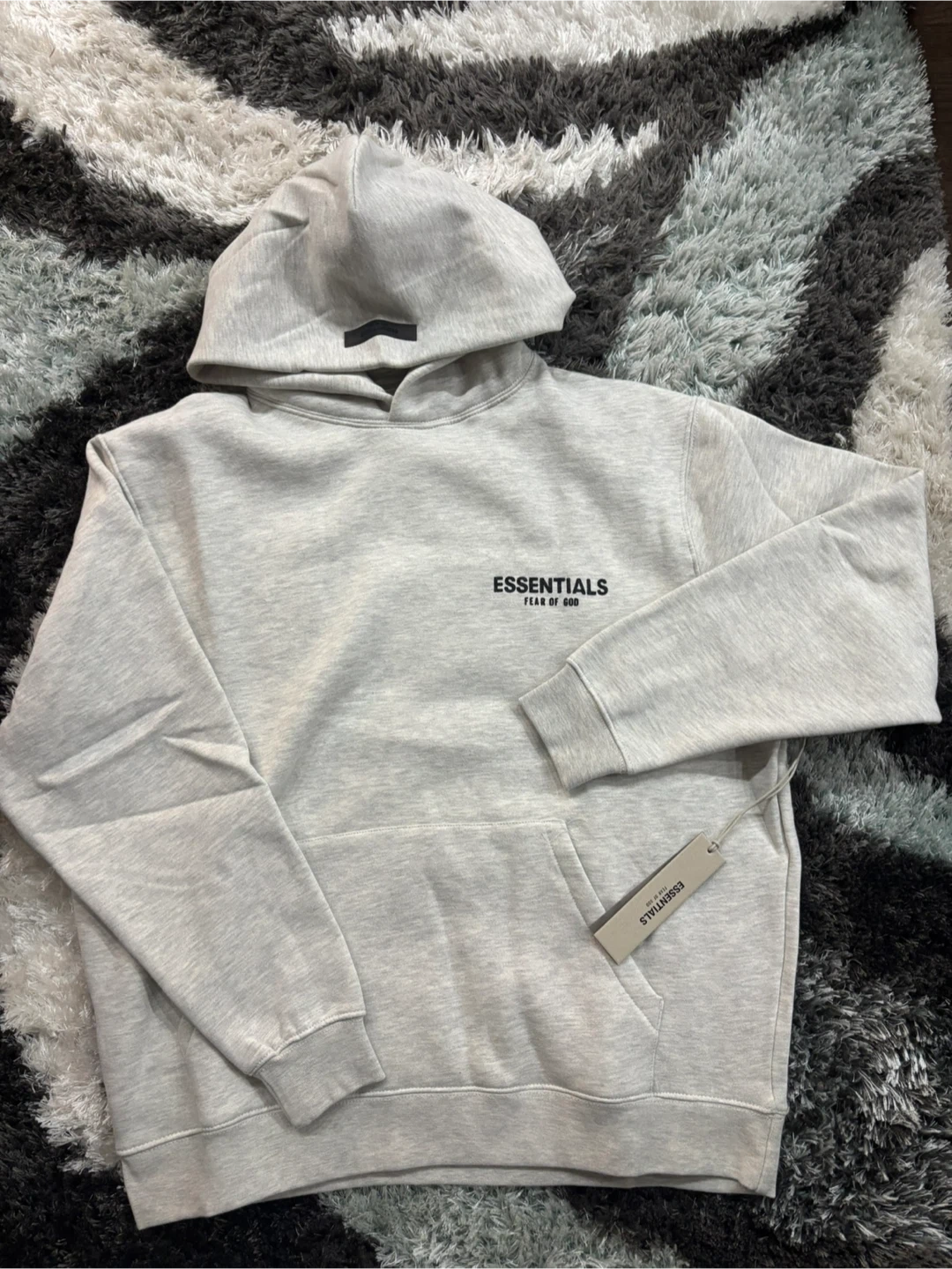 I'm selling an Essentials Fear of God hoodie. It's a stylish and comfortable piece. Perfect for everyday wear!