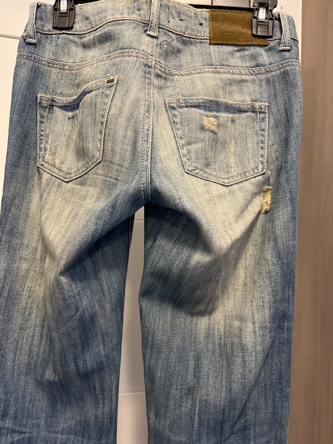 These are a pair of True Religion jeans in a distressed style. They are size 26 and have a good amount of wear and tear, as you can see from the photos. They're still stylish and have lots of life left!