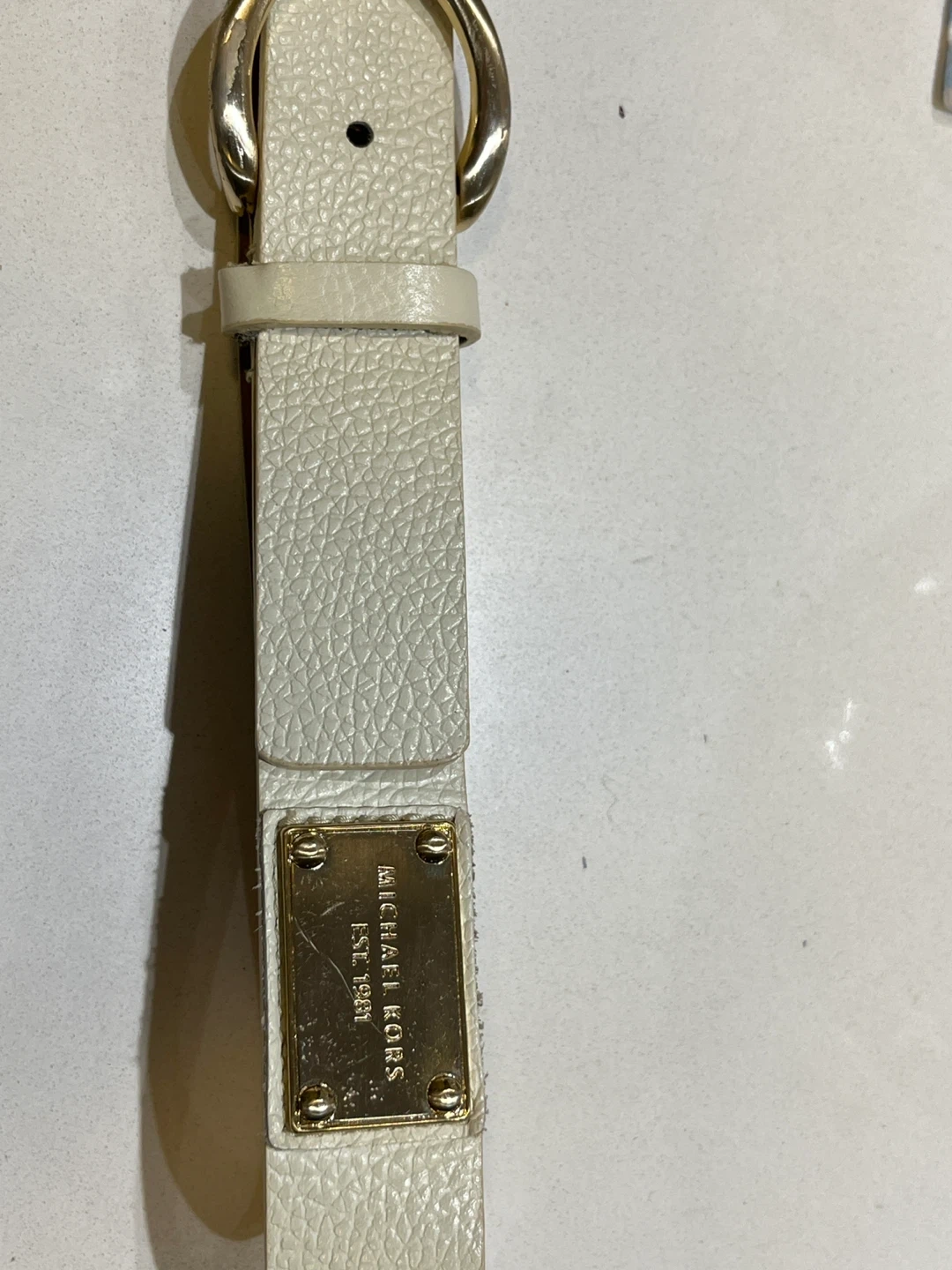 Selling a Michael Kors belt in off-white. It's made of genuine leather and is a size small. Would look great with any outfit!