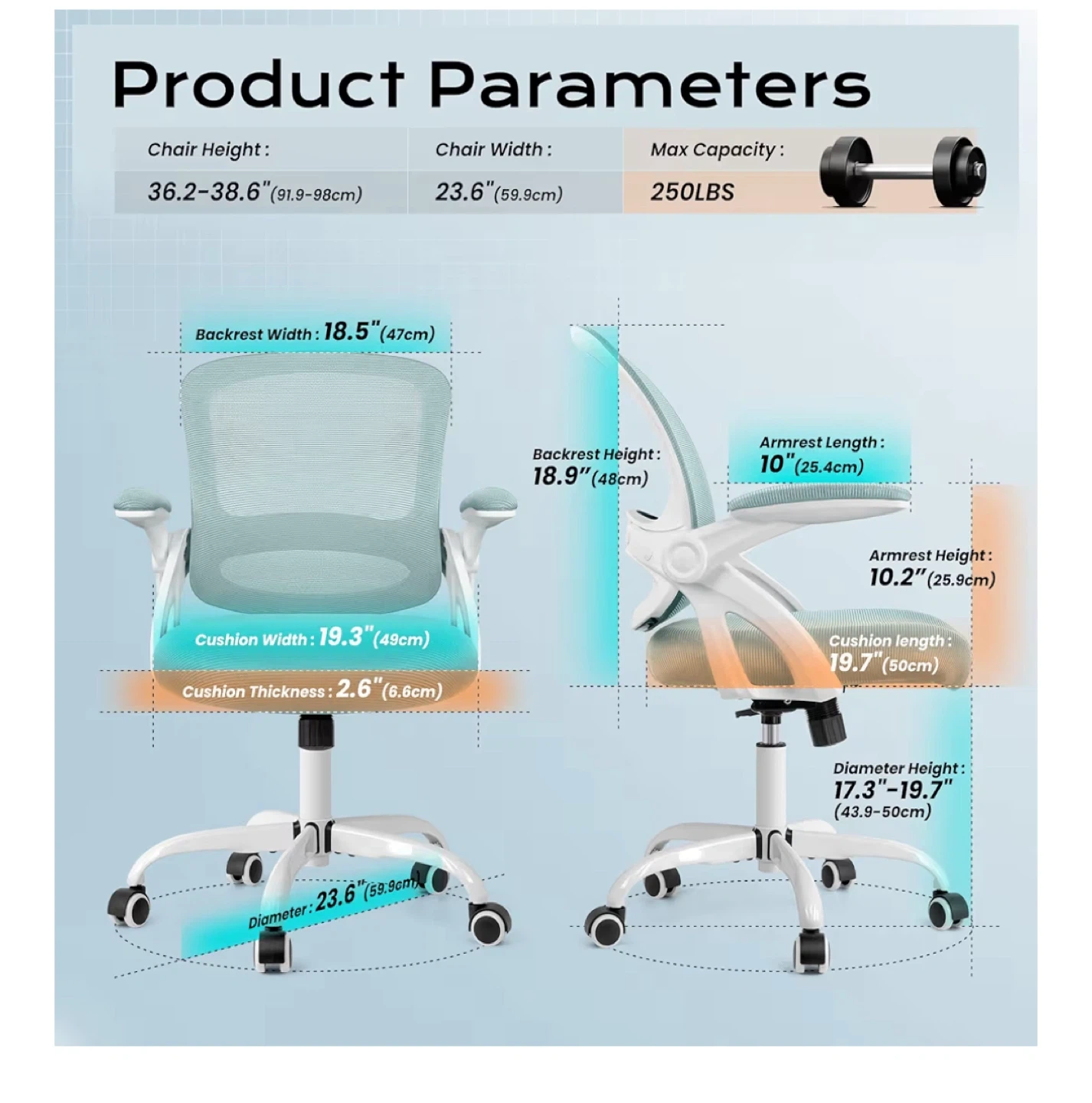 - Chair Height: 36.2-38.6" (91.9-98cm)