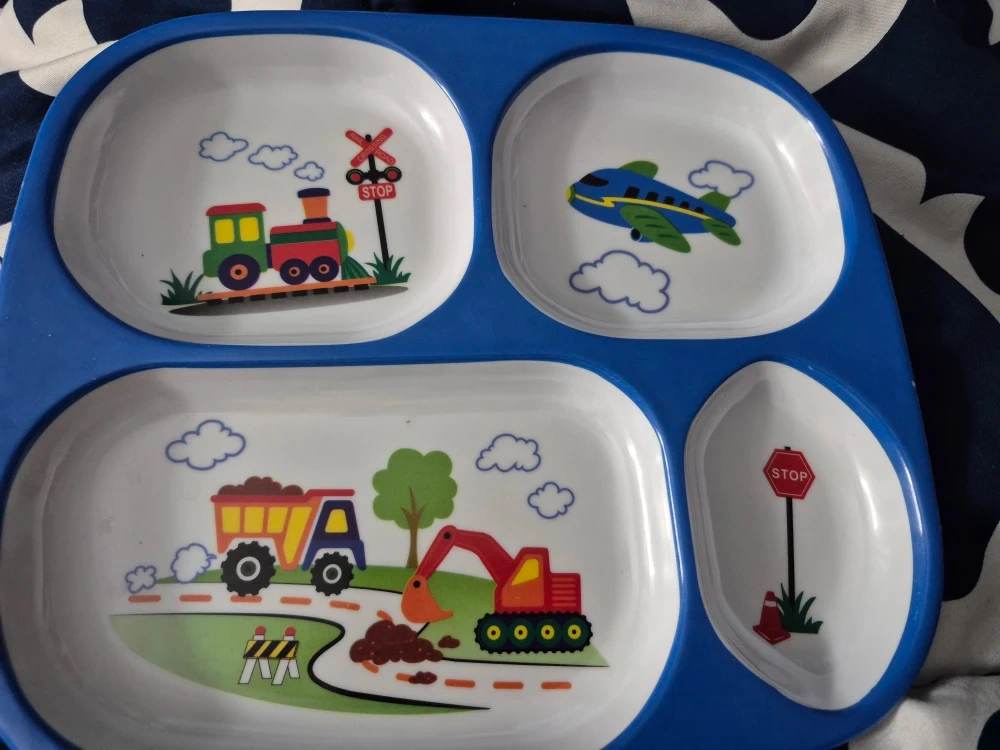 Selling 2 cute divided plate for kids! It features fun designs of a train, plane, and truck. Perfect for making mealtime a little more exciting for your little one