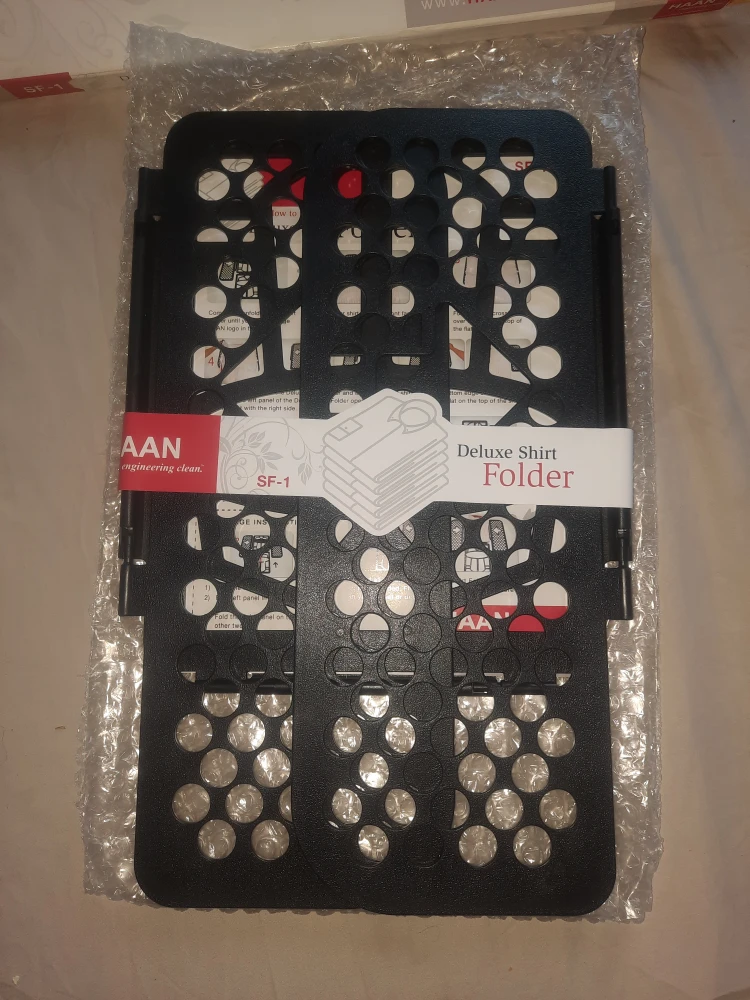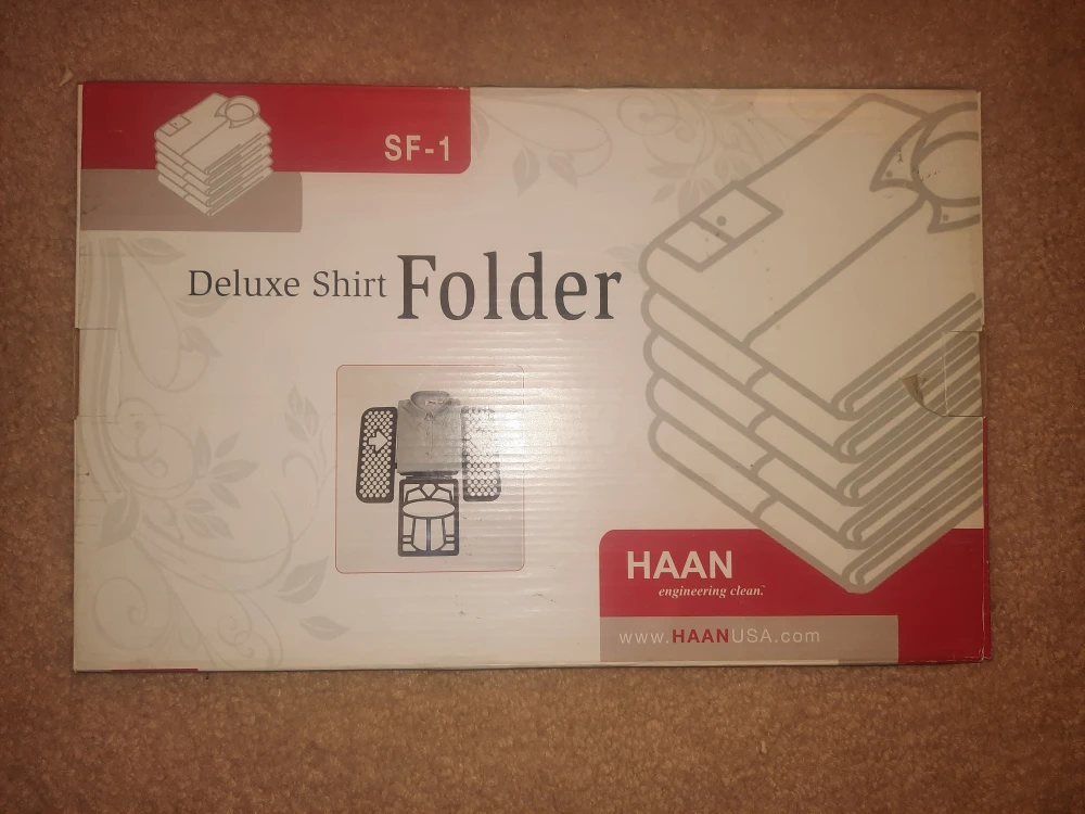 I'm selling a brand new HAAN Deluxe Shirt Folder SF-1, still in its original packaging! This handy tool makes folding shirts and T-shirts quick and easy, helping you keep your closet neat and organized. It's perfect for anyone who wants to save time and effort on laundry day. Get yours today!