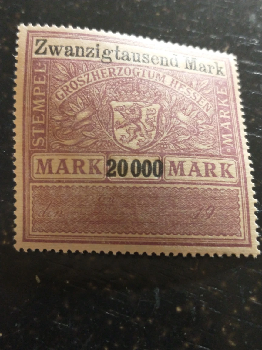 1 / 21 / 2Buy & Sell1923 MNH 20,000 mark revenue stamp of Grand Duchy of Hesse1923 MNH 20,000 mark revenue stamp of Grand Duchy of Hesse$820,000 mark revenue stamp of Grand Duchy of Hesse, in envelope 11.WHERE TO MEETCheck LocationView MapSELLERStevenBroadview N35834 reviews0 chats·1 favorites·16 viewsSEND CHAT TO SELLERHi Steven! I’m interested in your listing.Hi Steven! I’m interested in your listing.Get the Karrot app to chatSign In to chat