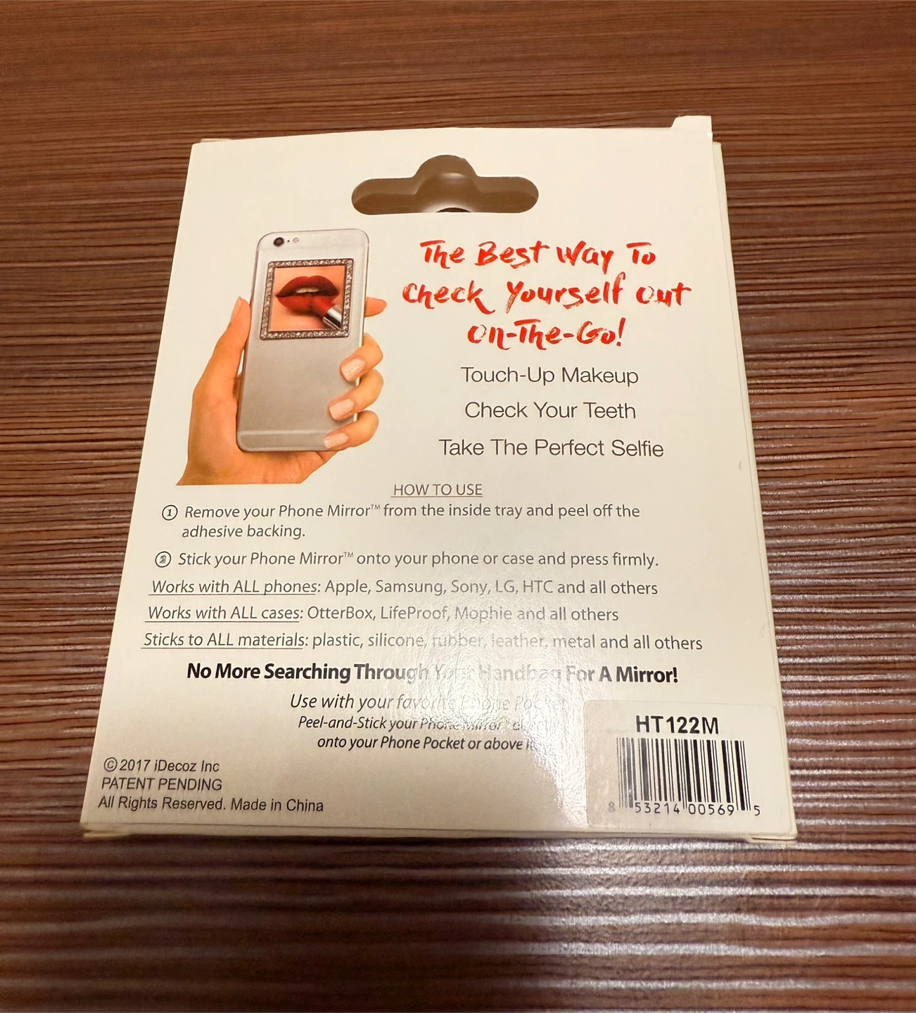 This is a iDecoz Phone Mirror. It's a restickable mirror for all phones and cases. It is a peel and stick on all phones, cases and phone