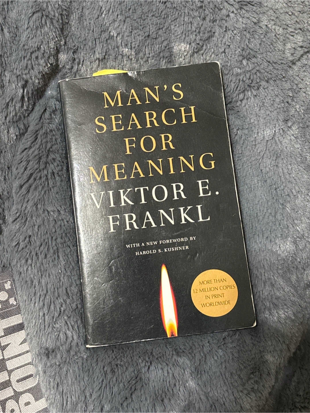 Selling a copy of "Man's Search for Meaning" by Viktor E. Frankl. It's a thought-provoking book that has sold over 12 million copies worldwide. Perfect for anyone interested in psychology, philosophy, or personal growth!