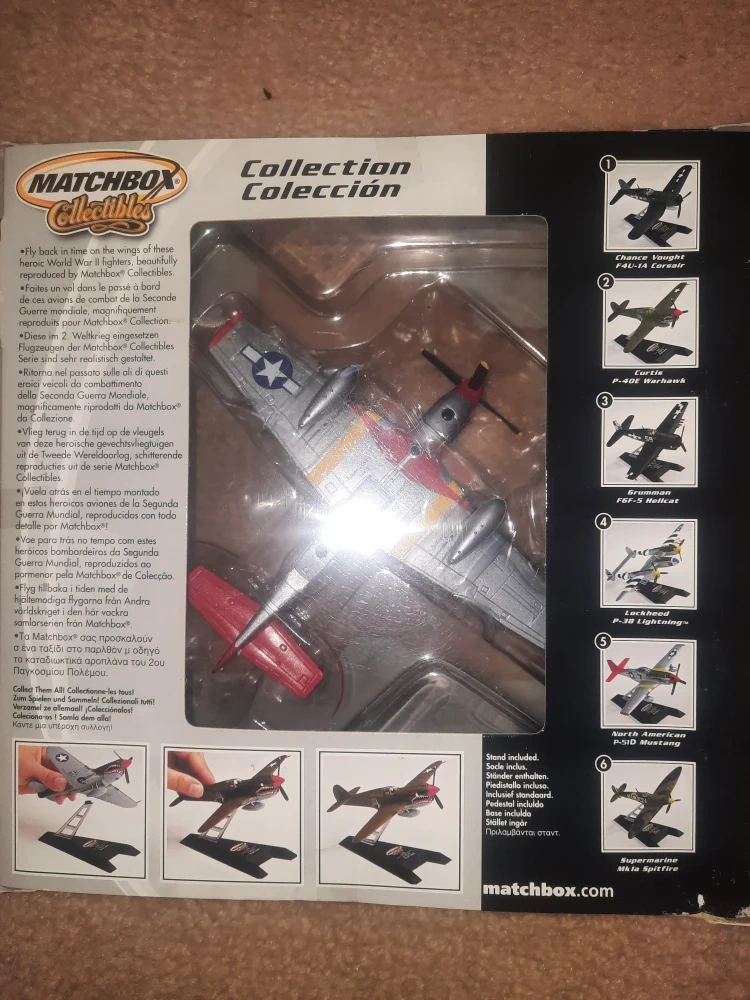 Selling a Matchbox Collectibles P-51D Mustang airplane model! It's from the Collection series and comes with its original packaging. A cool piece for any collector!