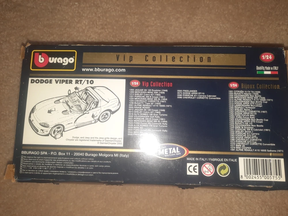Selling a Brand New Burago Dodge Viper RT/10 diecast car. Part of the VIP Collection!